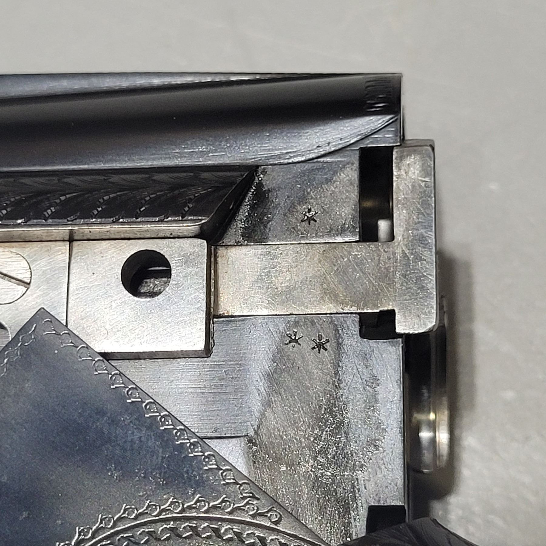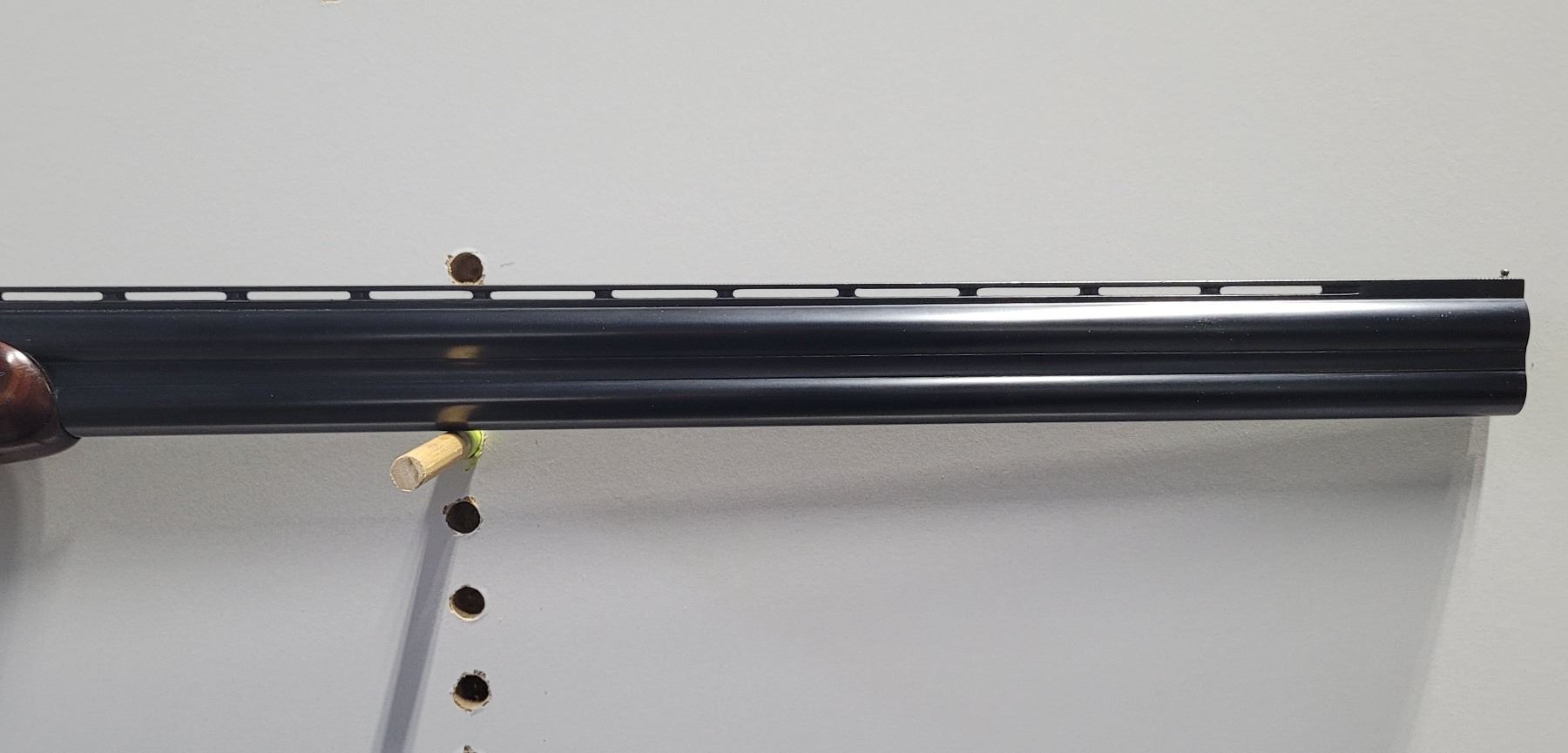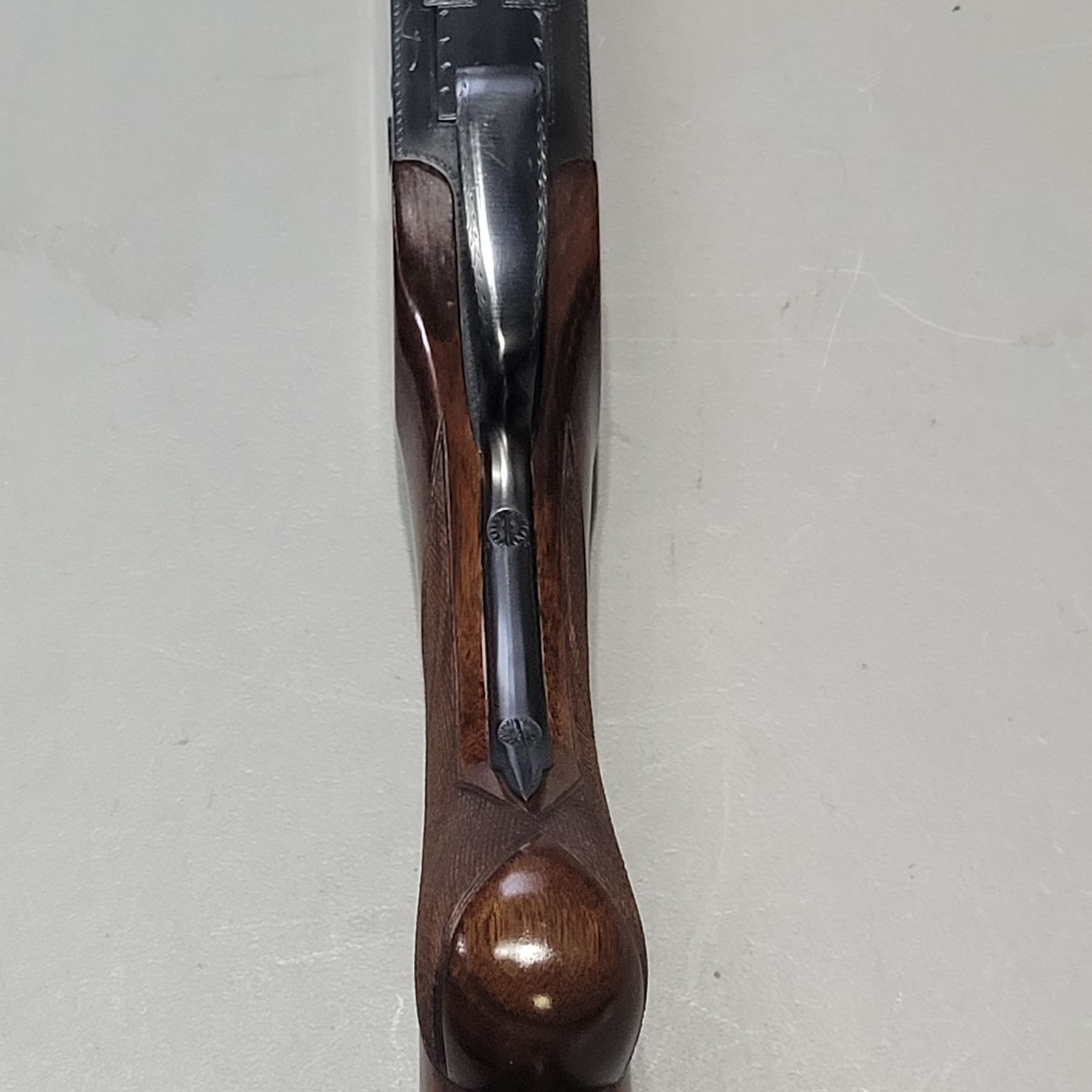 Used Browning Superposed 20ga Over and Under Shotgun. Serial number 999. This is a early model of the Browning Superposed Shotgun, with the long tang and round knob pistol grip. The barrels are 28" and are in very good condition. The top barrel is full choke and the bottom barrel is modified choke. The bluing and stock finish is in very good condition with sharp checkering. It has a period correct Jostin recoil pad. The length of pull is 14 1/8". This is a very collectible shotgun that appears to have seen very little use.