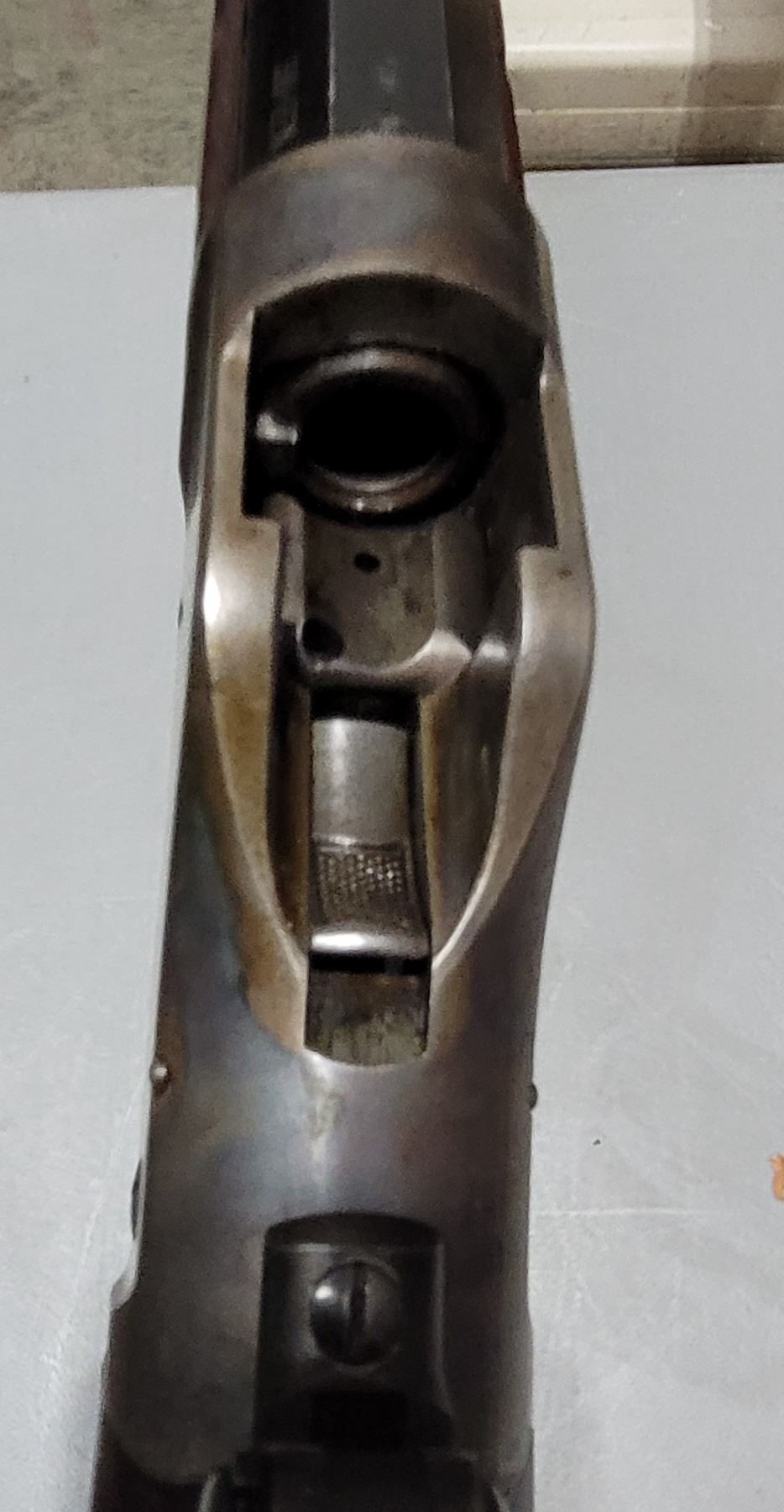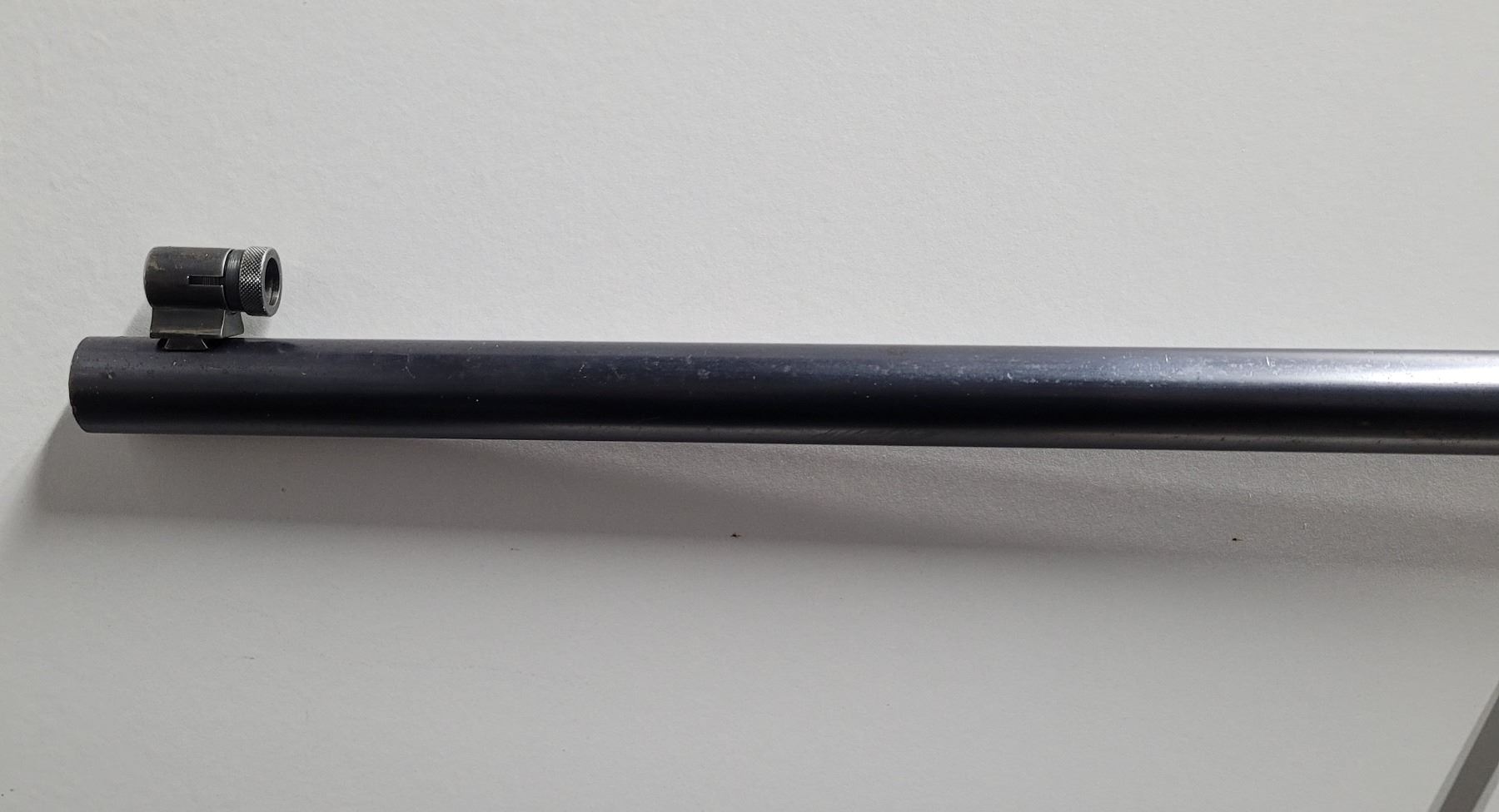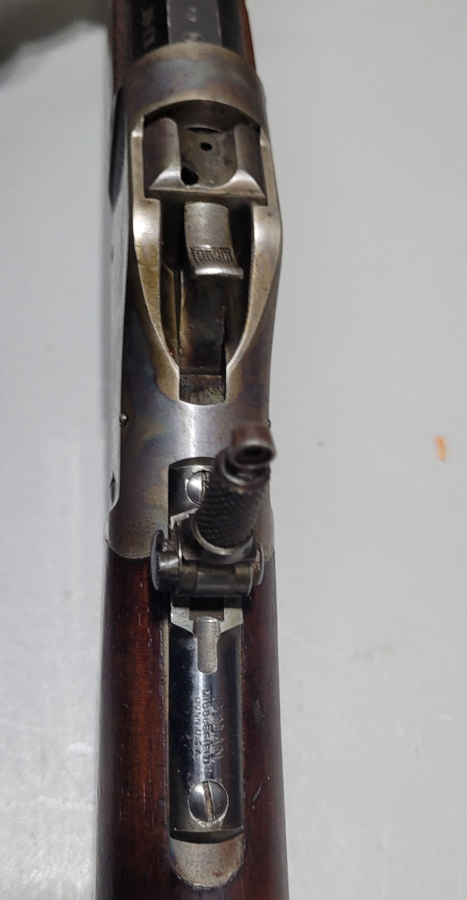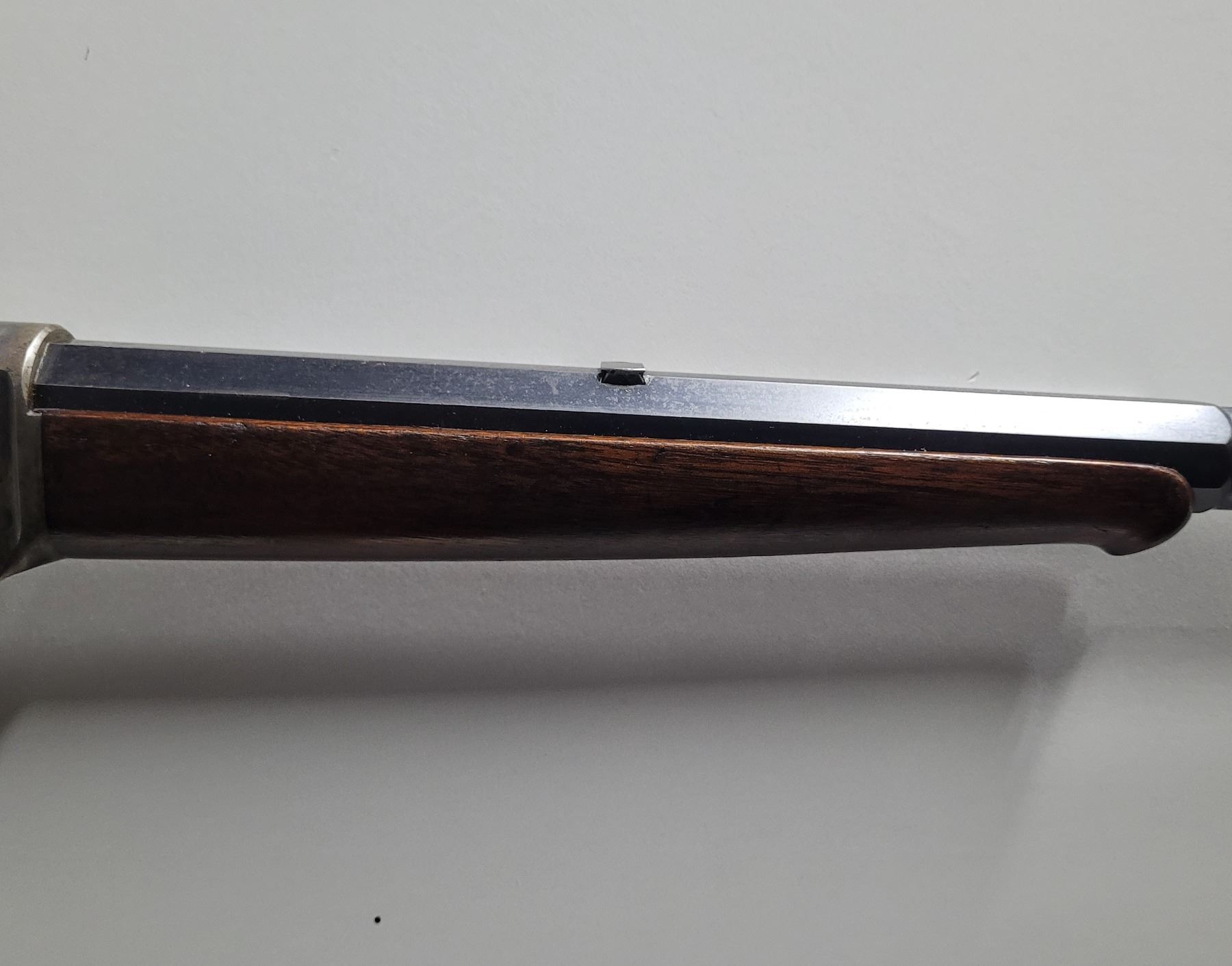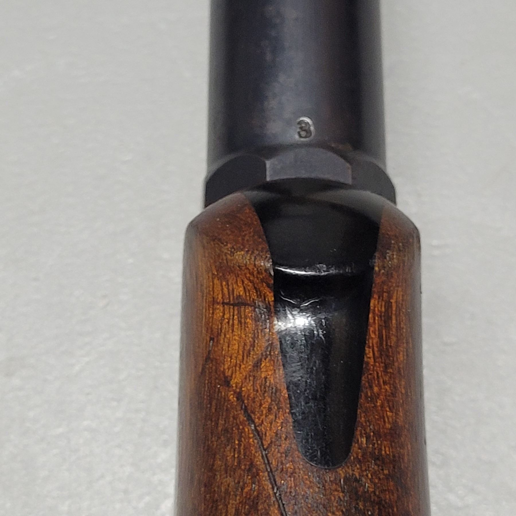 Used Winchester 1885 Highwall Single Shot in 38-90 Express Caliber. This rifle has a 30" half octagon half round #3 Barrel. It has a Lyman tang sight and a Lyman 17A front globe sight. The rear sight has been replaced with a blank. The barrel is stamped with the WP as well as the P proof marks. The bore is excellent, bright with good rifling. The bluing is in good condition with some minor freckling. The case colours on the receiver are prominent with some freckling. See Photos. The stock appears to have the original finish with NO cracks . There are some dents and scratches as per the age of the rifle.