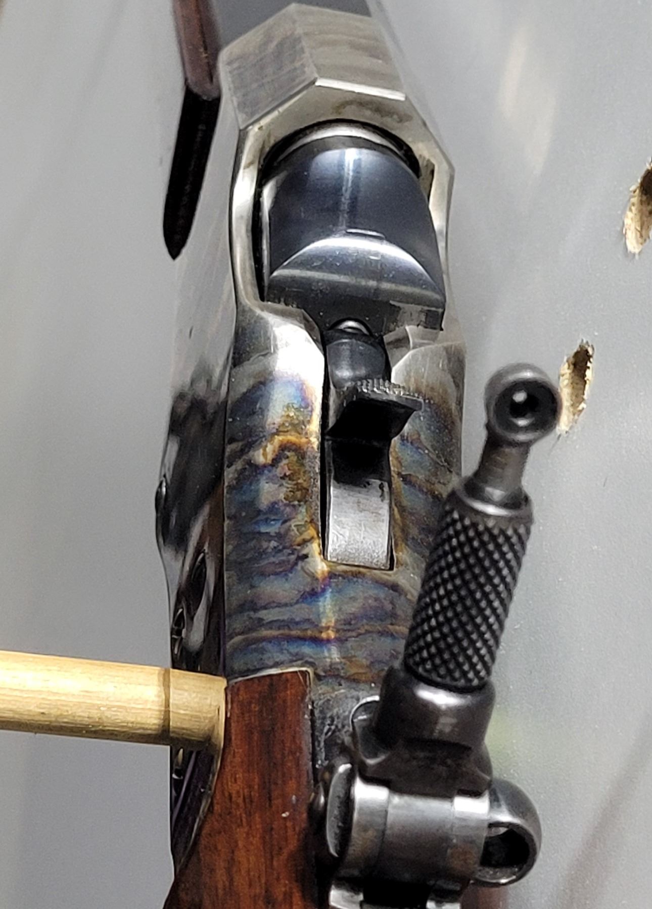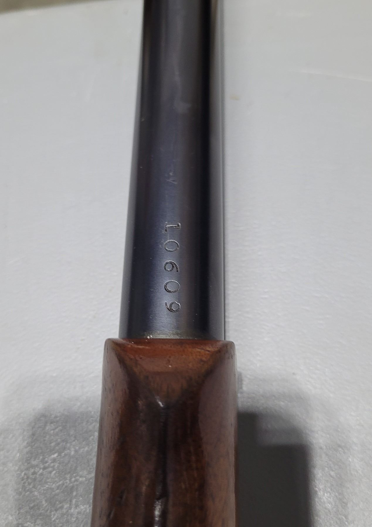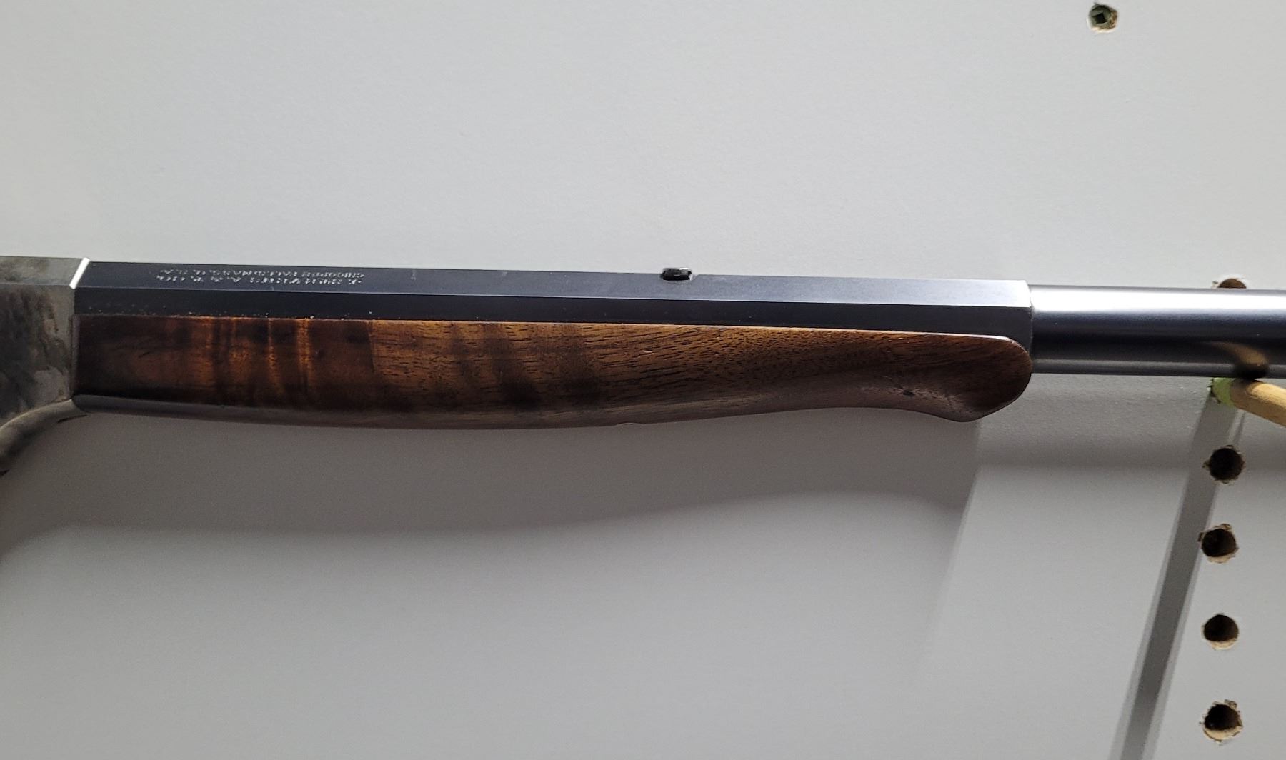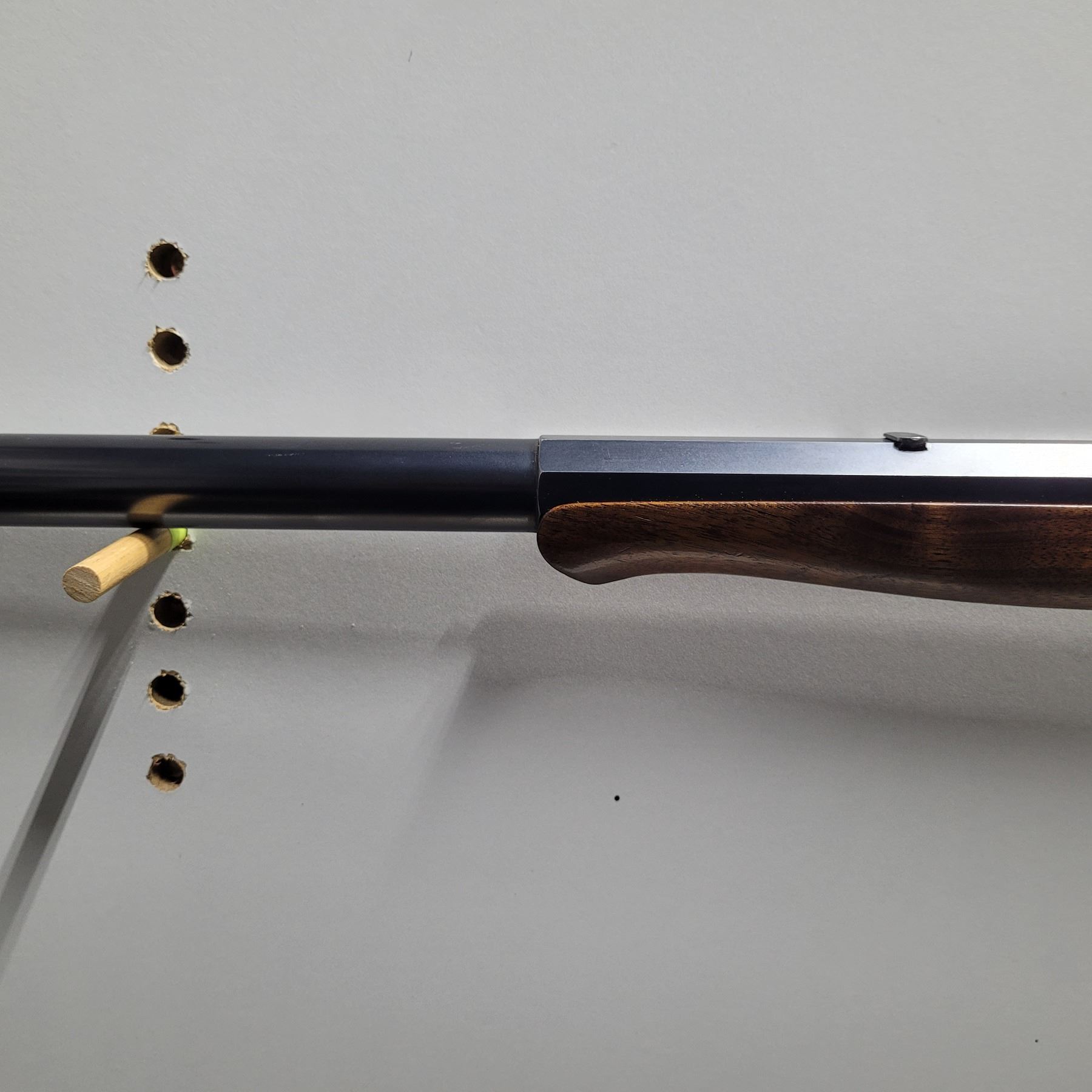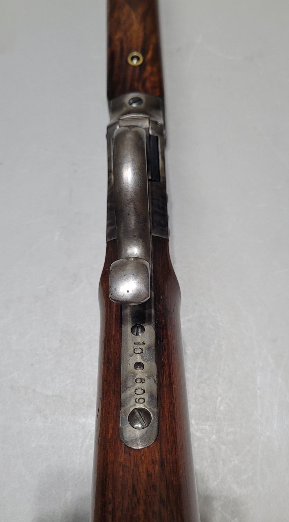 Used Stevens 45 Range 44 1/2 Single Shot Rifle in 32-40 Caliber. This rifle has an half octagon half round 30" barrel with an excellent bore. The bluing is excellent with minor wear at the muzzle. The case colours are vibrant on the receiver. The colours on the schuetzen buttplate and lever are worn on some areas. The stock is in very good condition with some minor dents and scratches. It has a globe front sight and a rear tang sight. The rear sight was replaced with a blank. Overall a beautiful rifle.