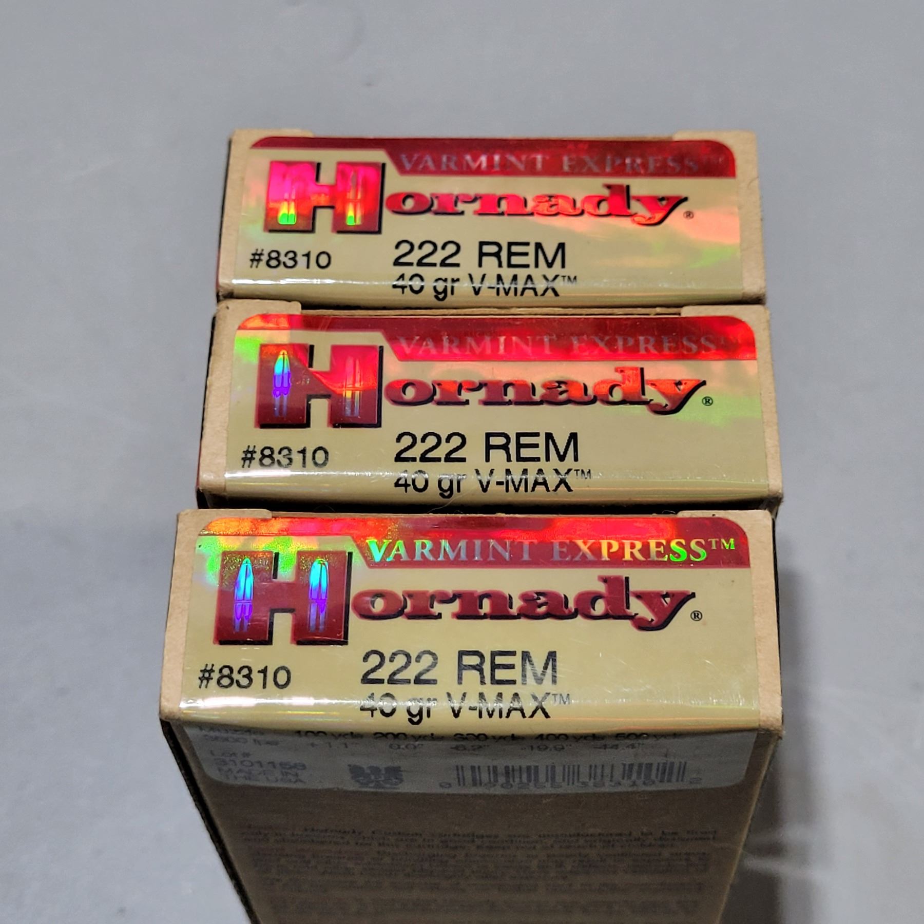 Lot 64 Hornady .222 Remington 40gr VMAX Cartridges 3 Boxes