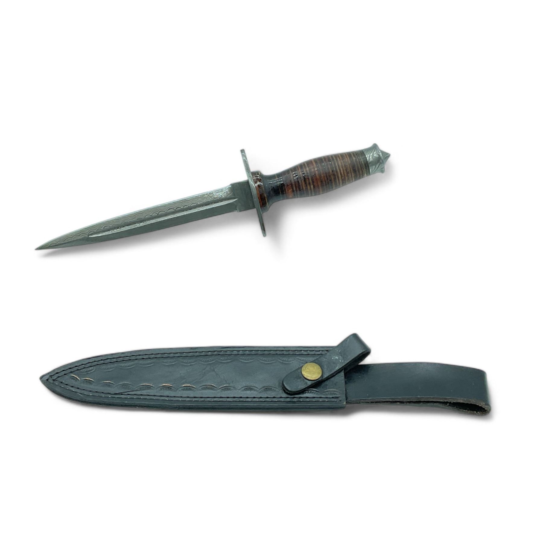 Fixed 7" Damascus Blade Dagger with Leather Belt Sheath