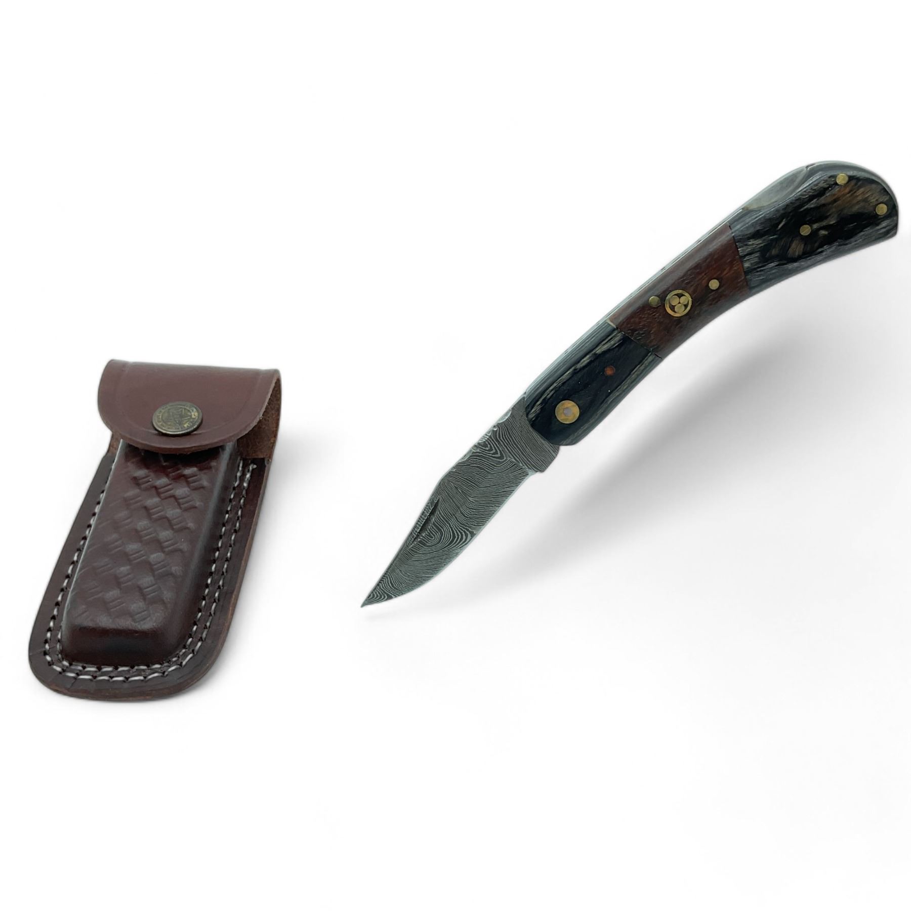 Folding 2-1/2" Damascus Blade Knife with Belt Sheath
