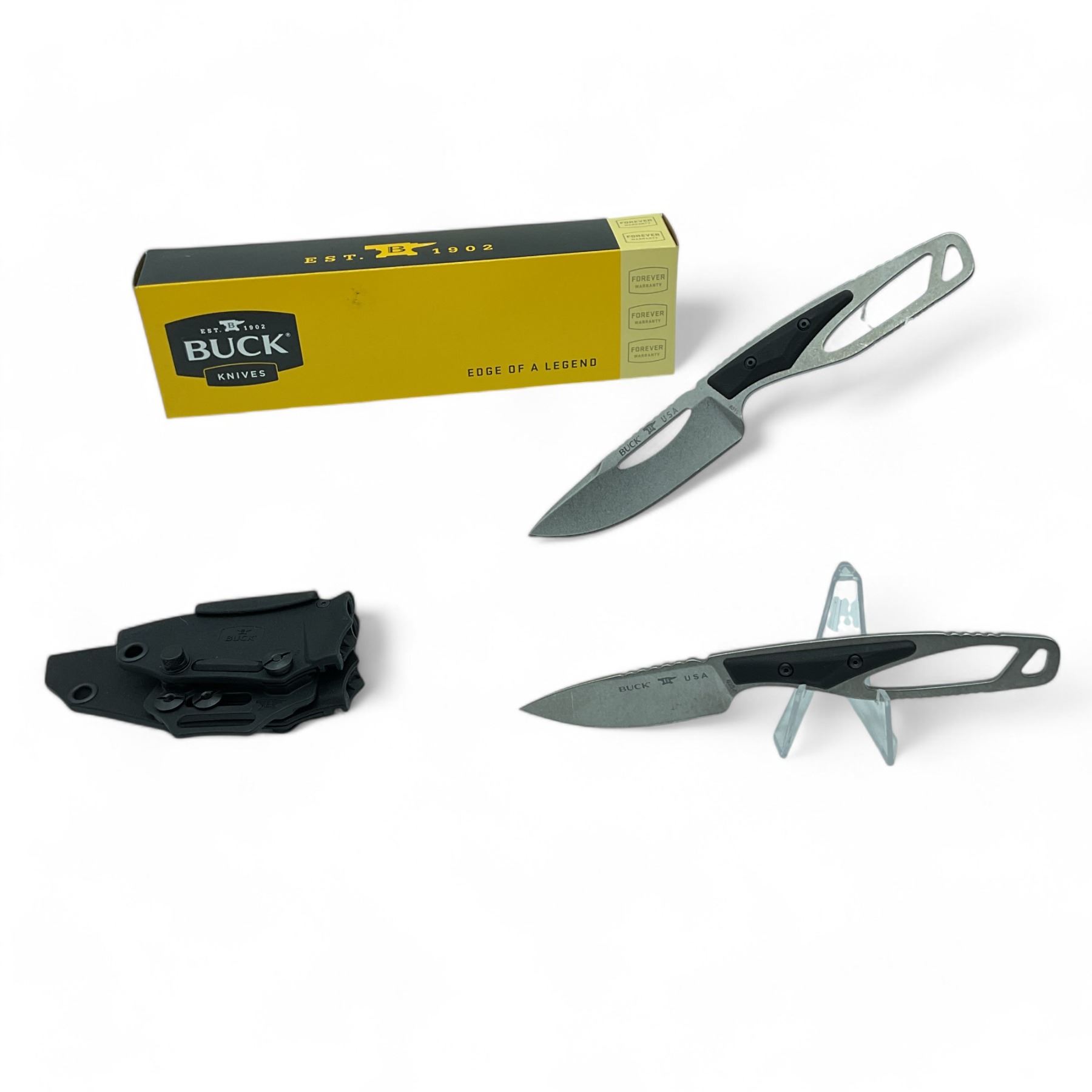 Buck Paklite Combo Kit Fixed 2-3/4" and 3-3/4" Blade Knives with Holder, New
