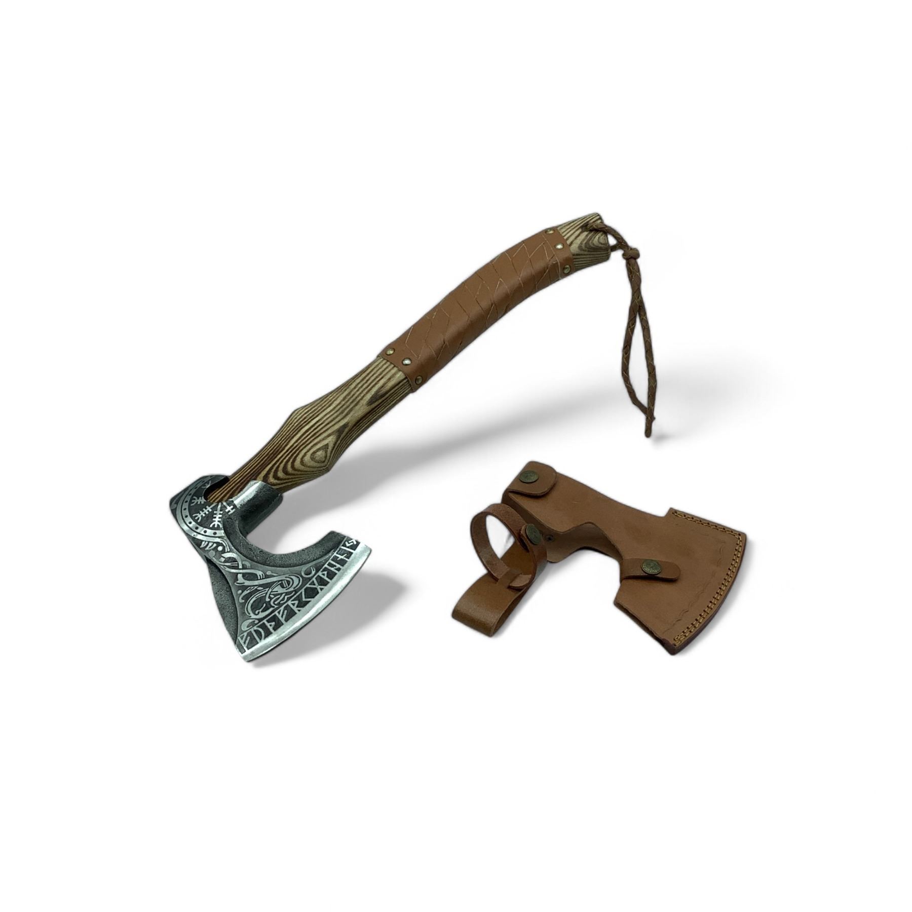 Fixed 4-1/2" Blade Axe with Leather Wrapped Wood Handle and Leather Sheath