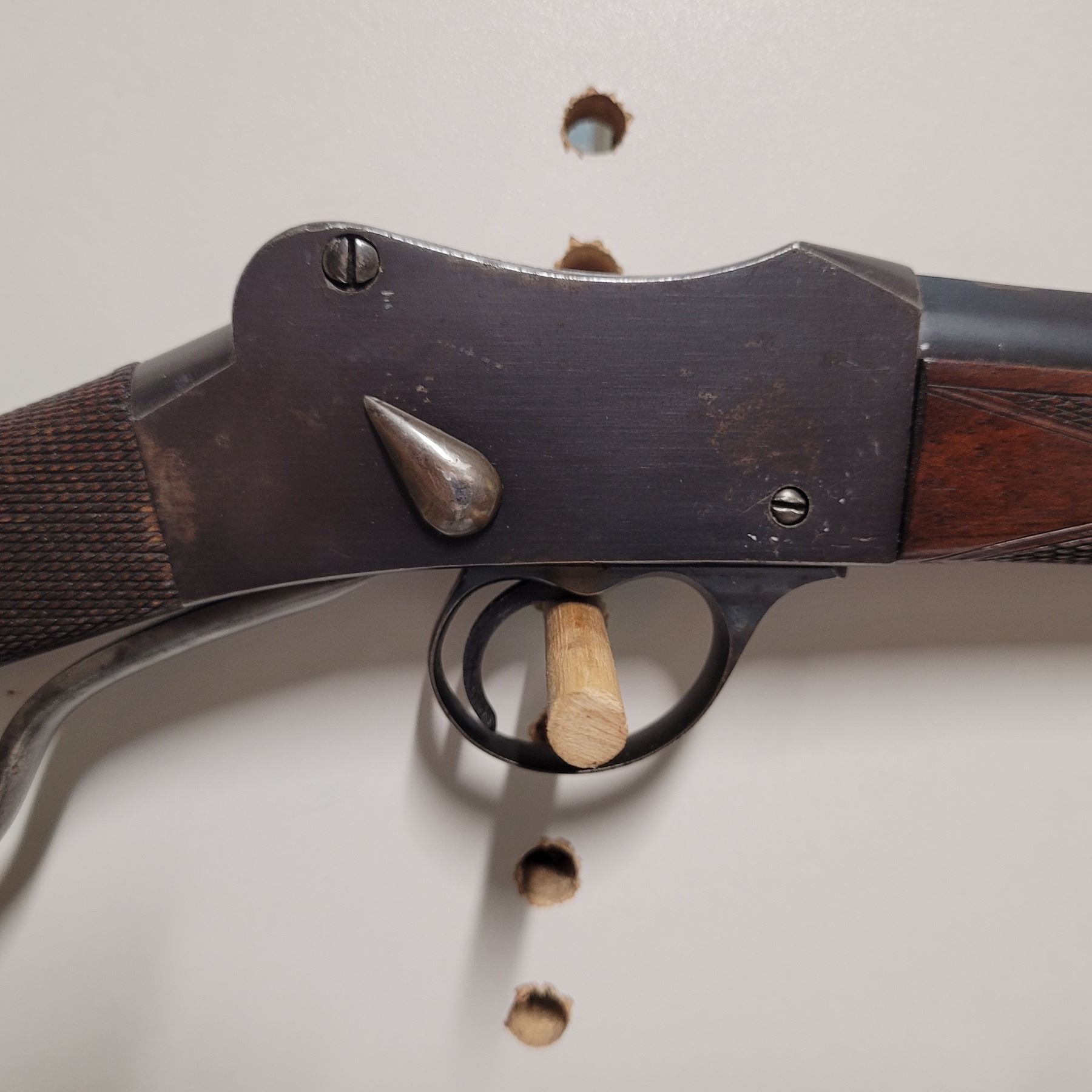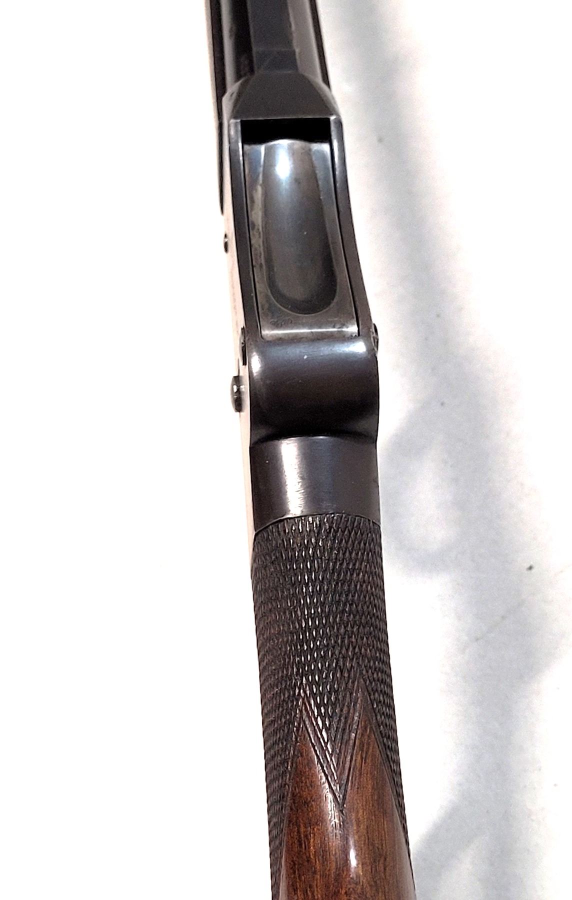 Cases are easily made from 22 Hornet Cases. The bore is .250 & uses .25 auto Bullets and can use .25 Auto bullets to reload the 250 Rook cartridge. The 27" round barrel has a flat matted sighting surface. The bore is very good. It has a 3 leaf rear sight with platinum inserts and a bead front sight. The bluing on the barrel and action is good with some minor freckles. Still retains some case colours on the receiver. The stock and checkering is in nice condition with some minor dents and scratches. Overall a very nice gun from a reputable manufacture of best guns.