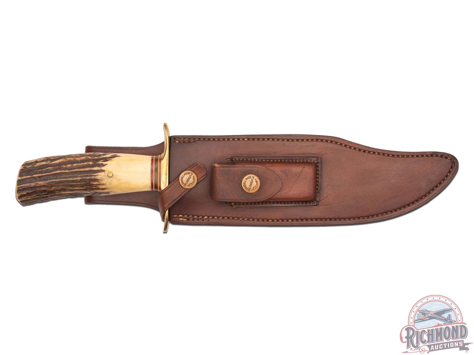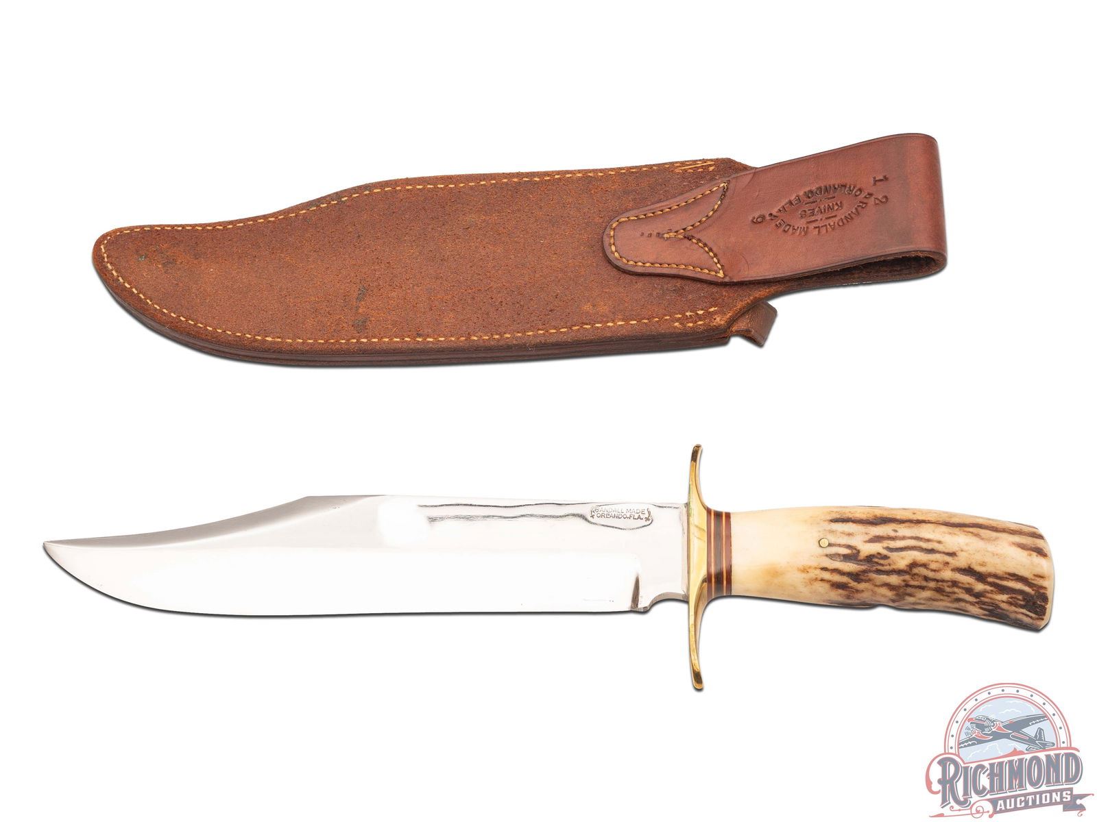 Lot 42 Randall Made Knife Model 12 Sportsman's Bowie 9" Blade Stag Handle with Compass