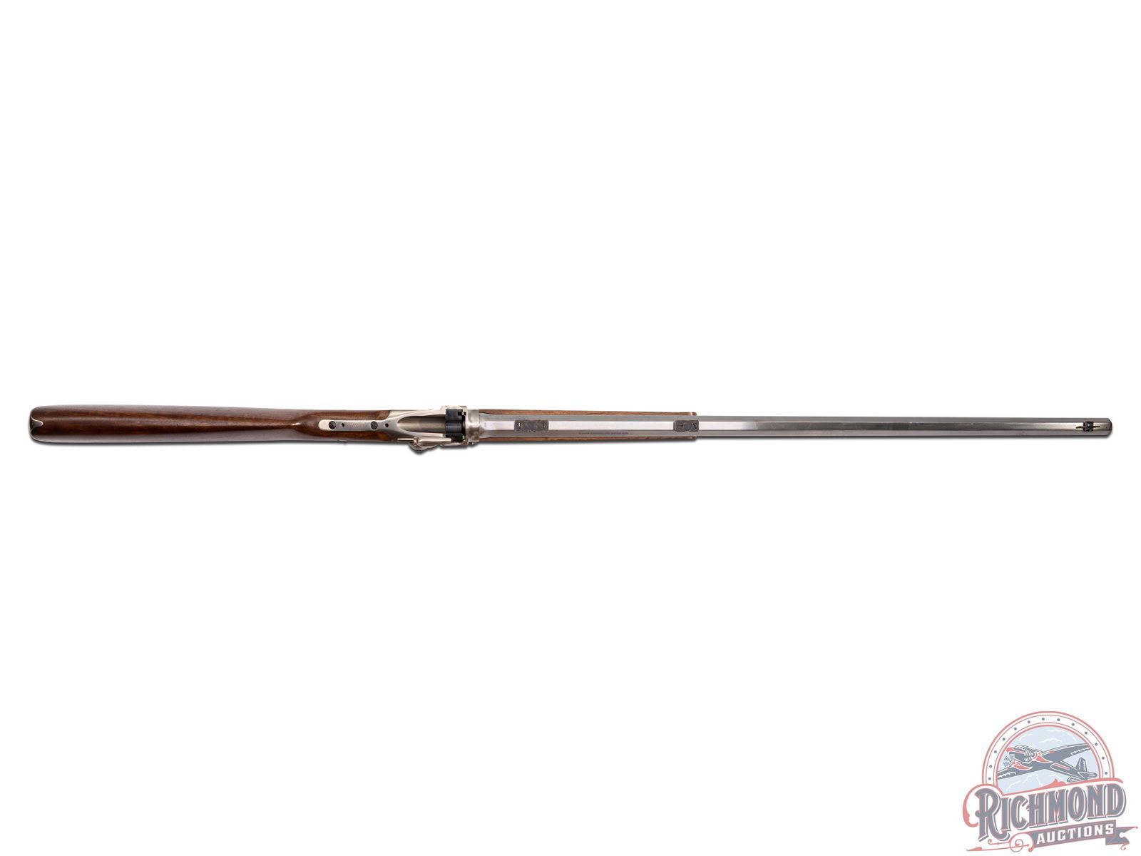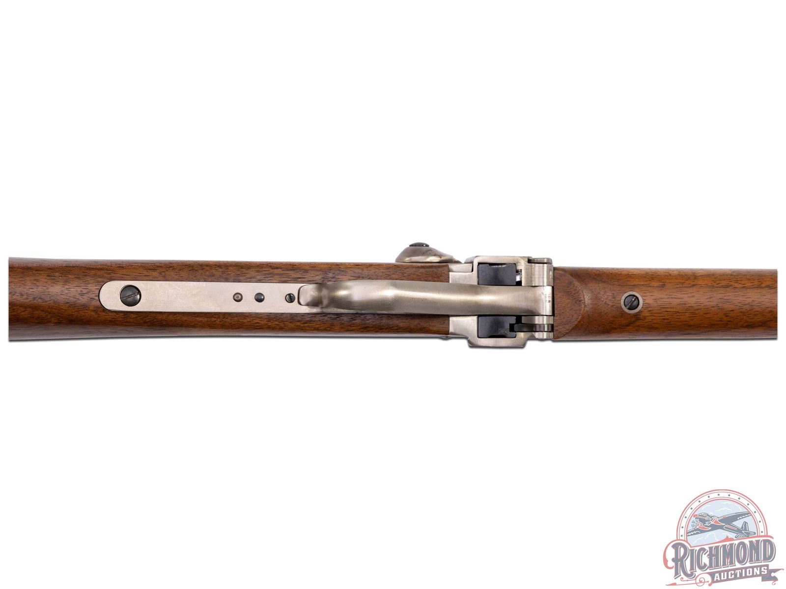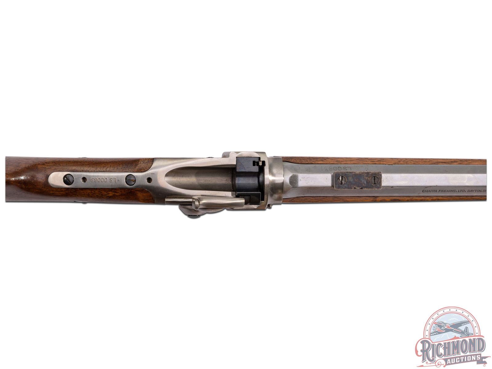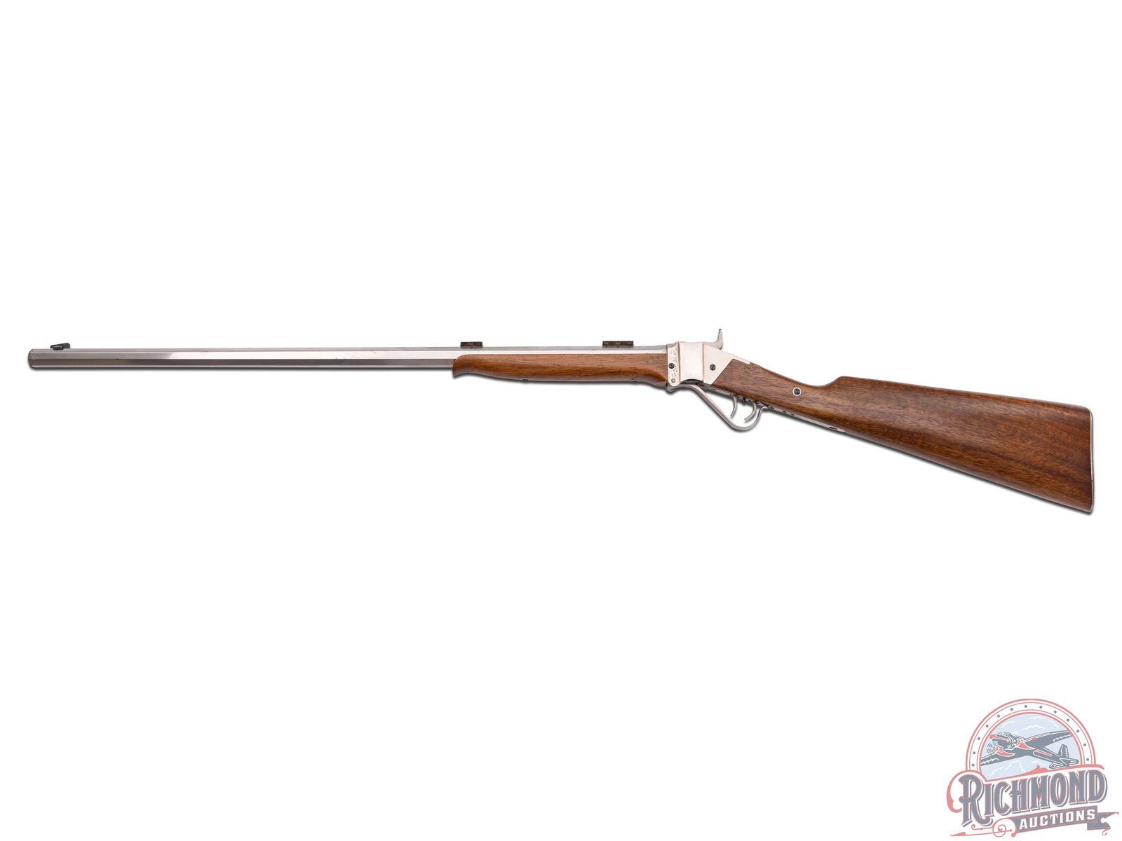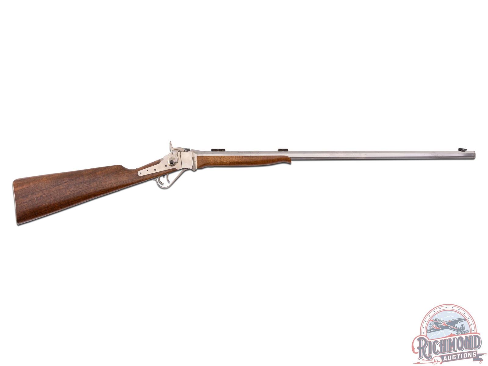 Made for Chiappa Firearms of Dayton, Ohio in circa last 20 years. 26" octagon barrel "in the white" with Rocky Mountain front sight and Posa scope blocks in 22 Hornet caliber. Pint size 1874 Sharps style action "in the white" finished with double set triggers. Walnut plain stocks with steel Chiappa Firearms butt plate. J.T. Livengood Collection. CALIBER: 22 Hornet. S/N: LS00069. FFL STATUS: Modern.