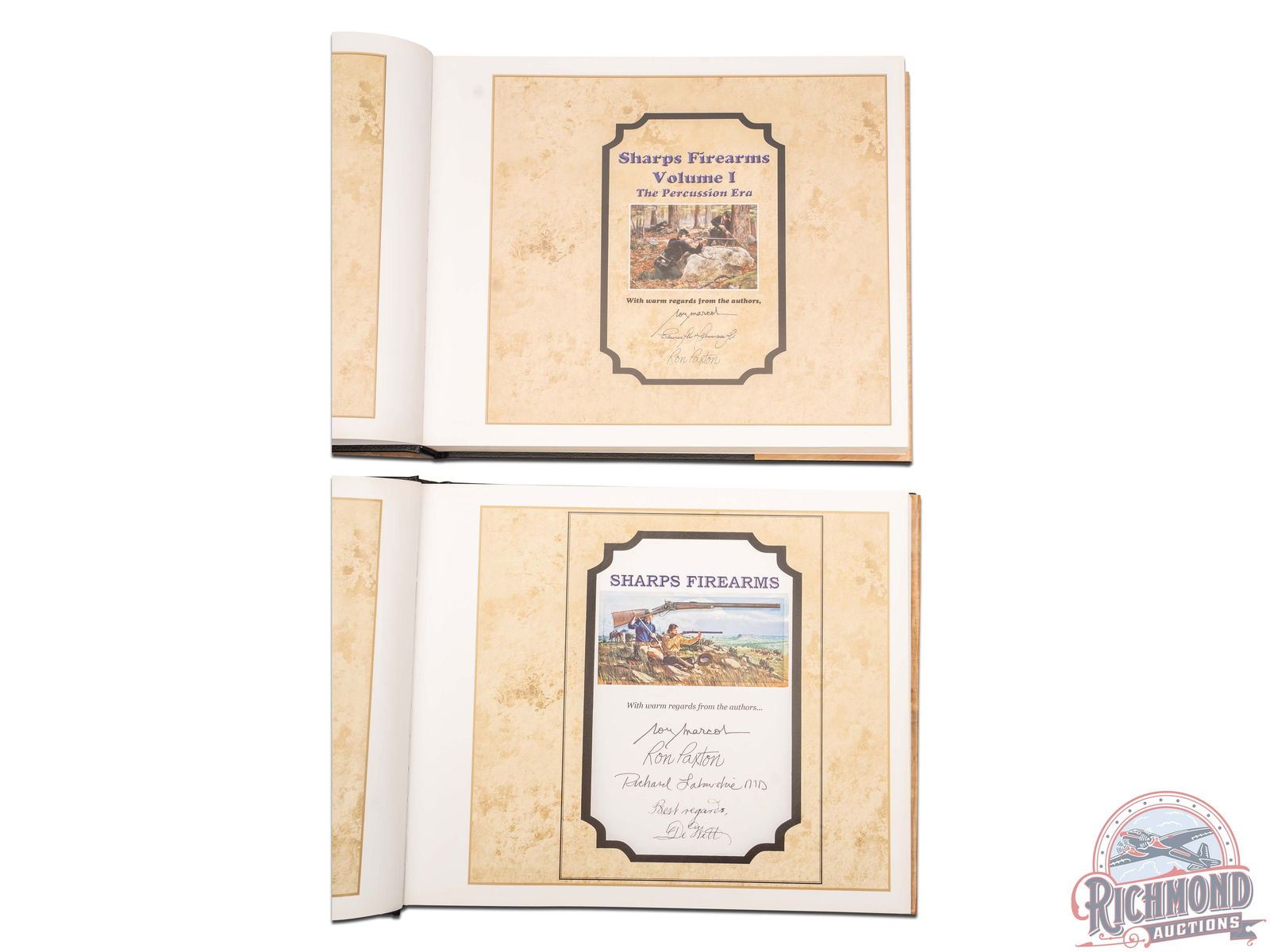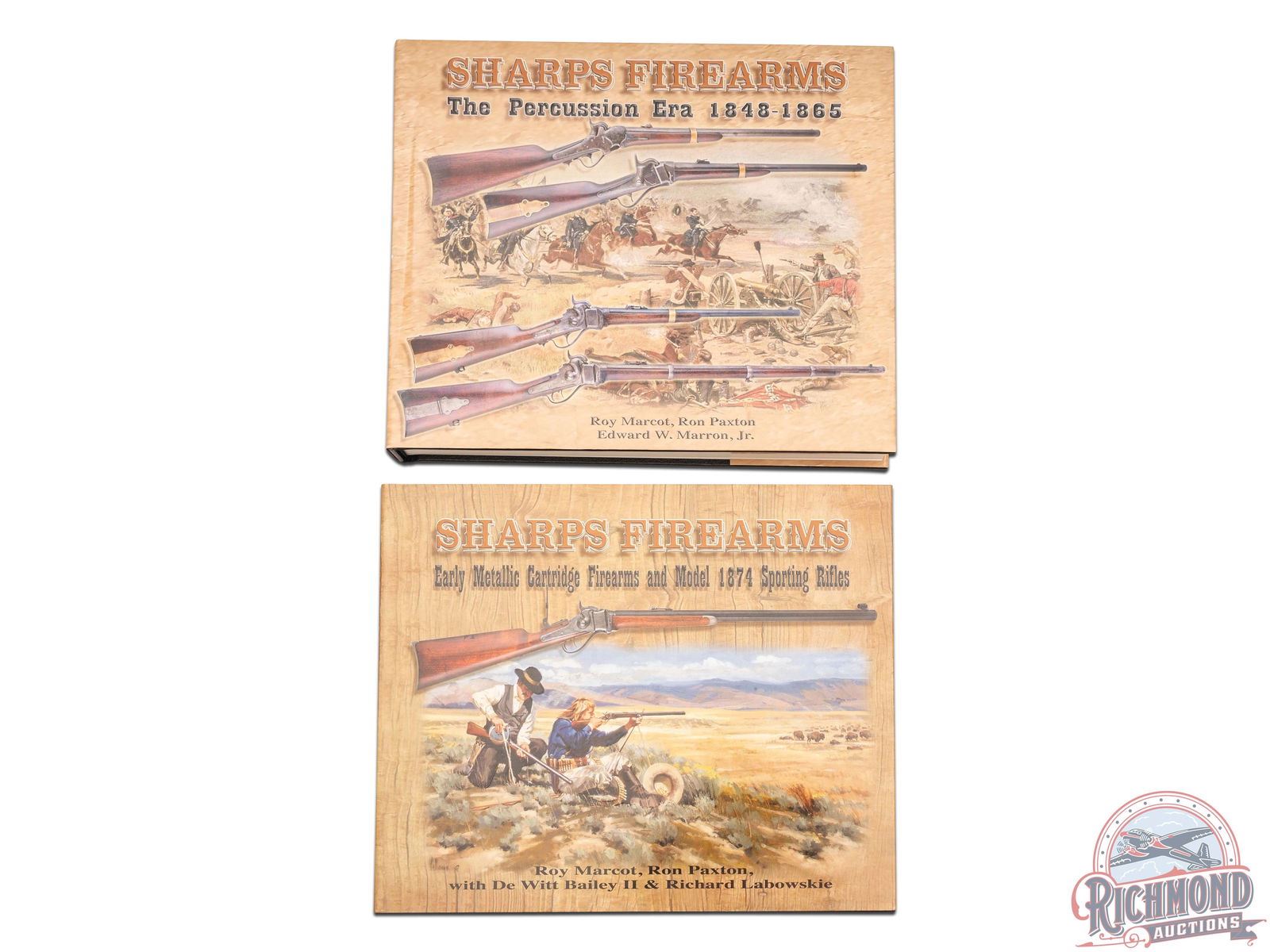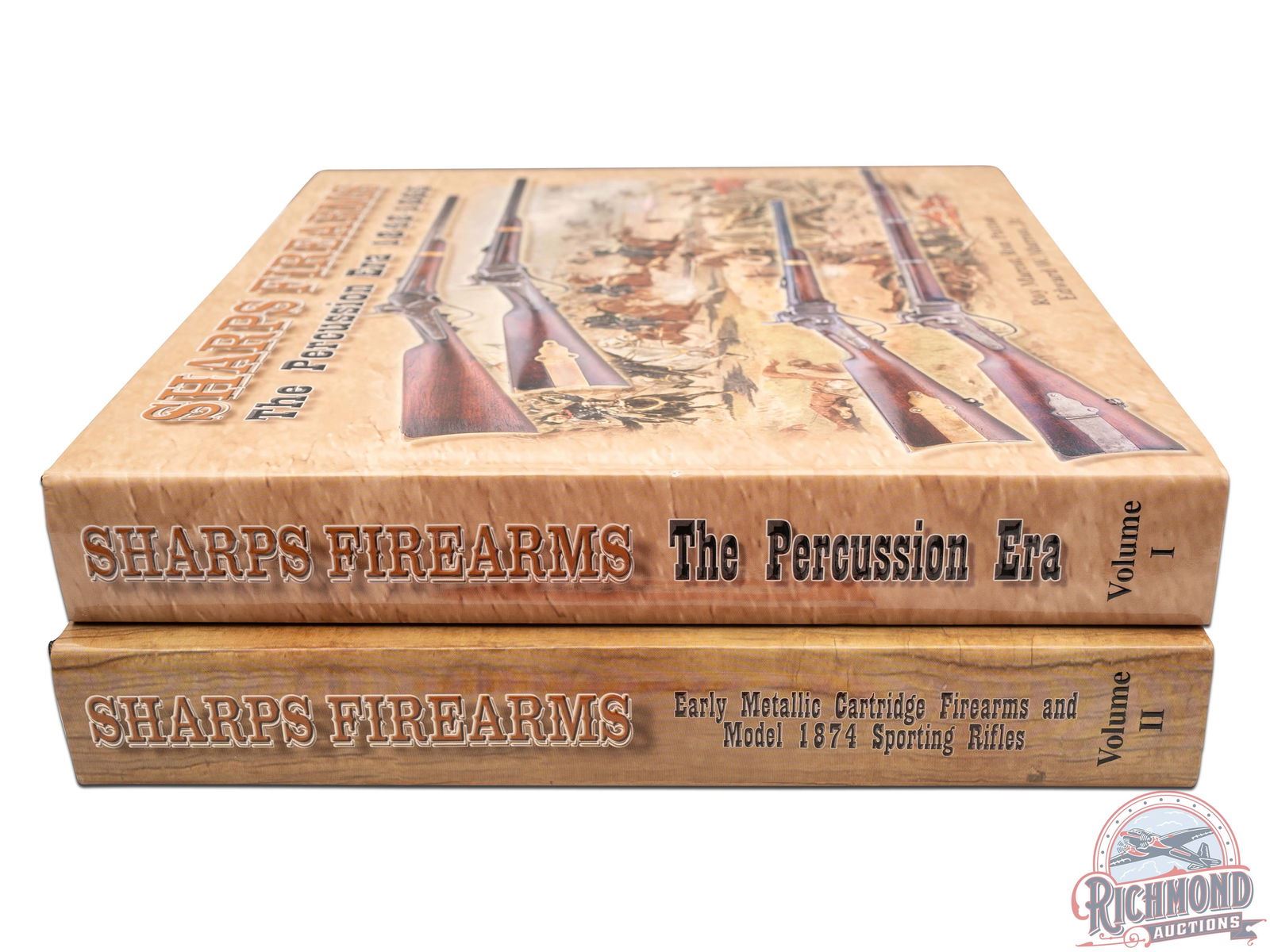 Hardback book set Volume I and II of Sharps Firearms. Volume I The Percussion Era 1848-1865 by Roy Marcot, Ron Paxton and Edward W. Marron, Jr. Volume II Early Metallic Cartridge Firearms and Model 1874 Sporting Rifle by Roy Marcot, Ron Paxton, De Witt Bailey II, and Richard Labowskie. Both include original dustcovers.