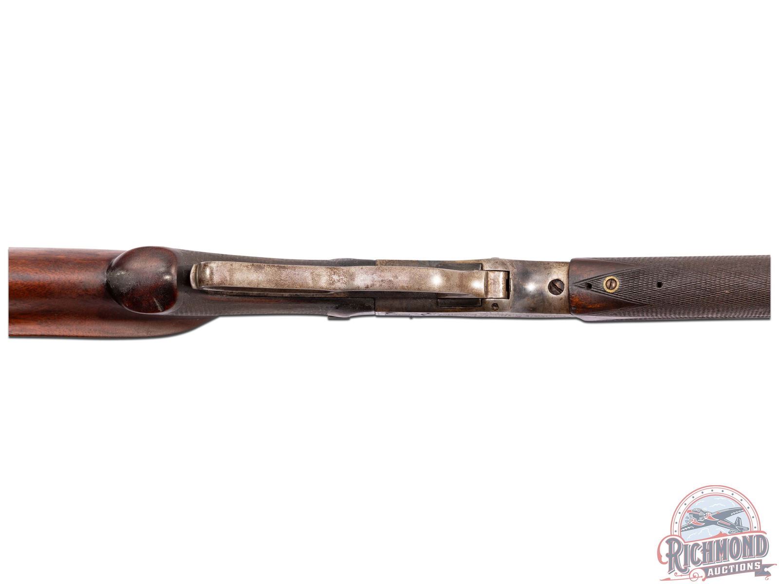Retains 90% original barrel blue with edges turning silver. Action has sharp engraving with case colors in corners. Stock has 50% original varnish with checkering worn flat and usage marks and dings. Good bore and mechanics.