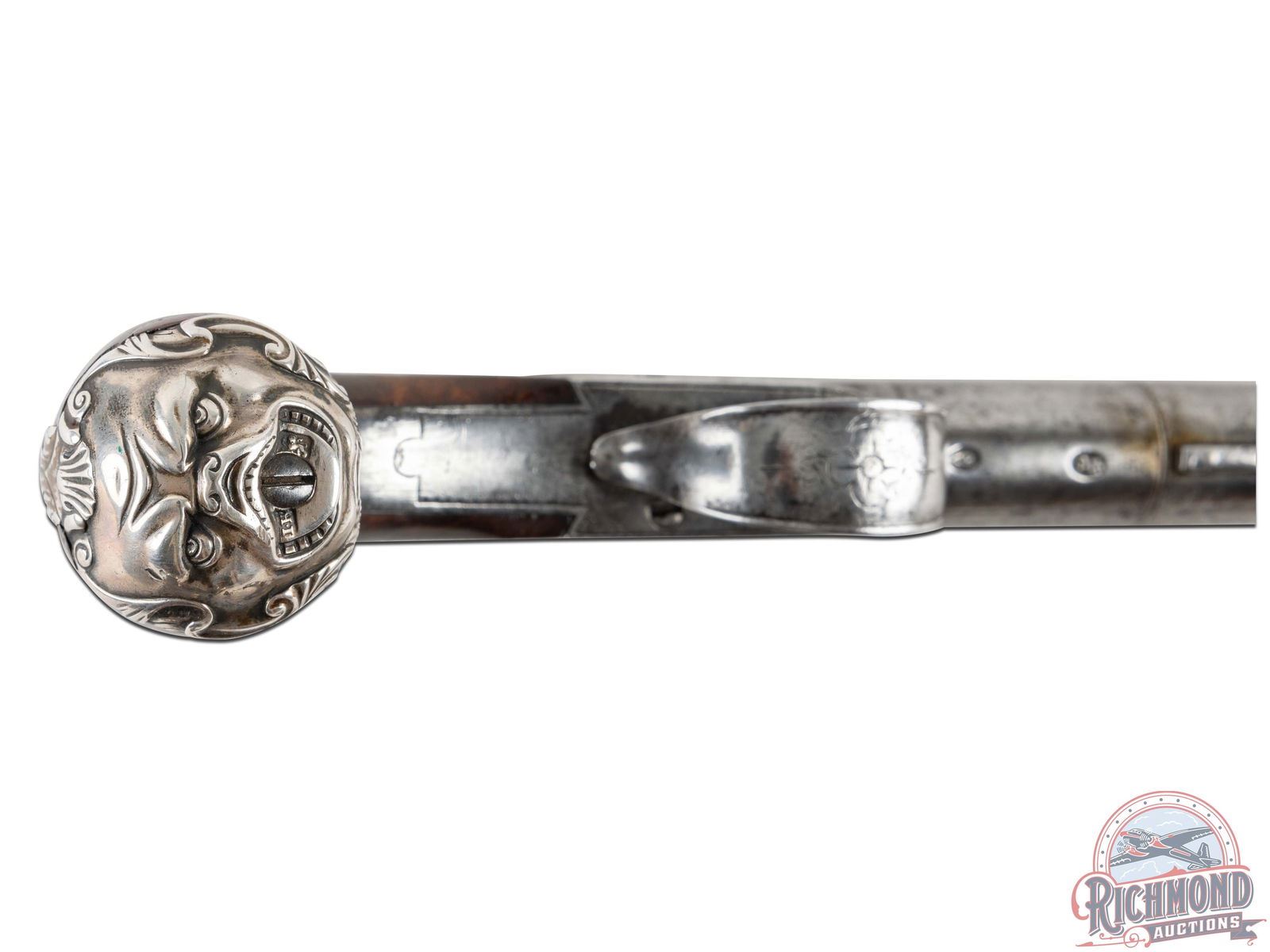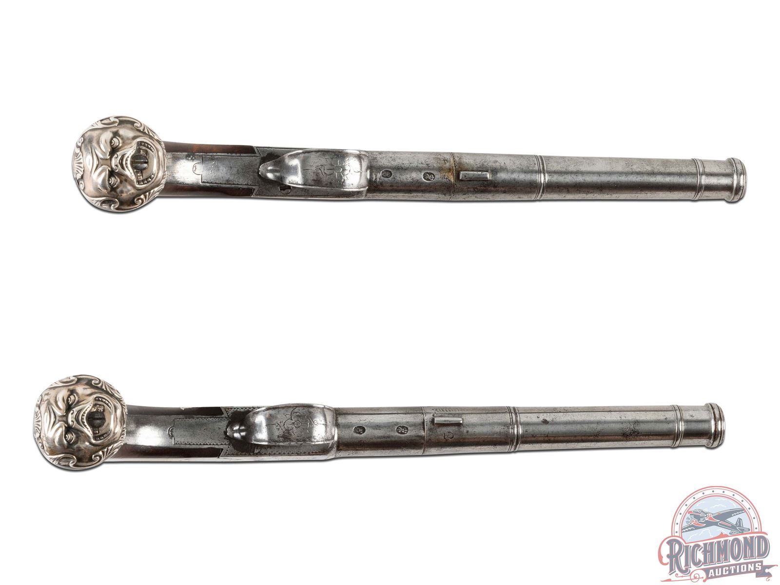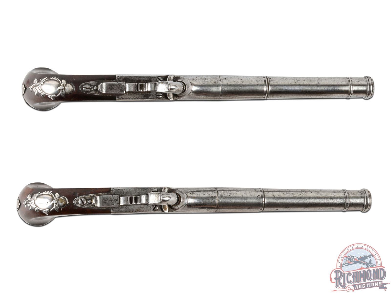 Lot 150 Antique Pair of Joseph Griffin Converted Queen Anne Silver Mounted Pistols with Display Case