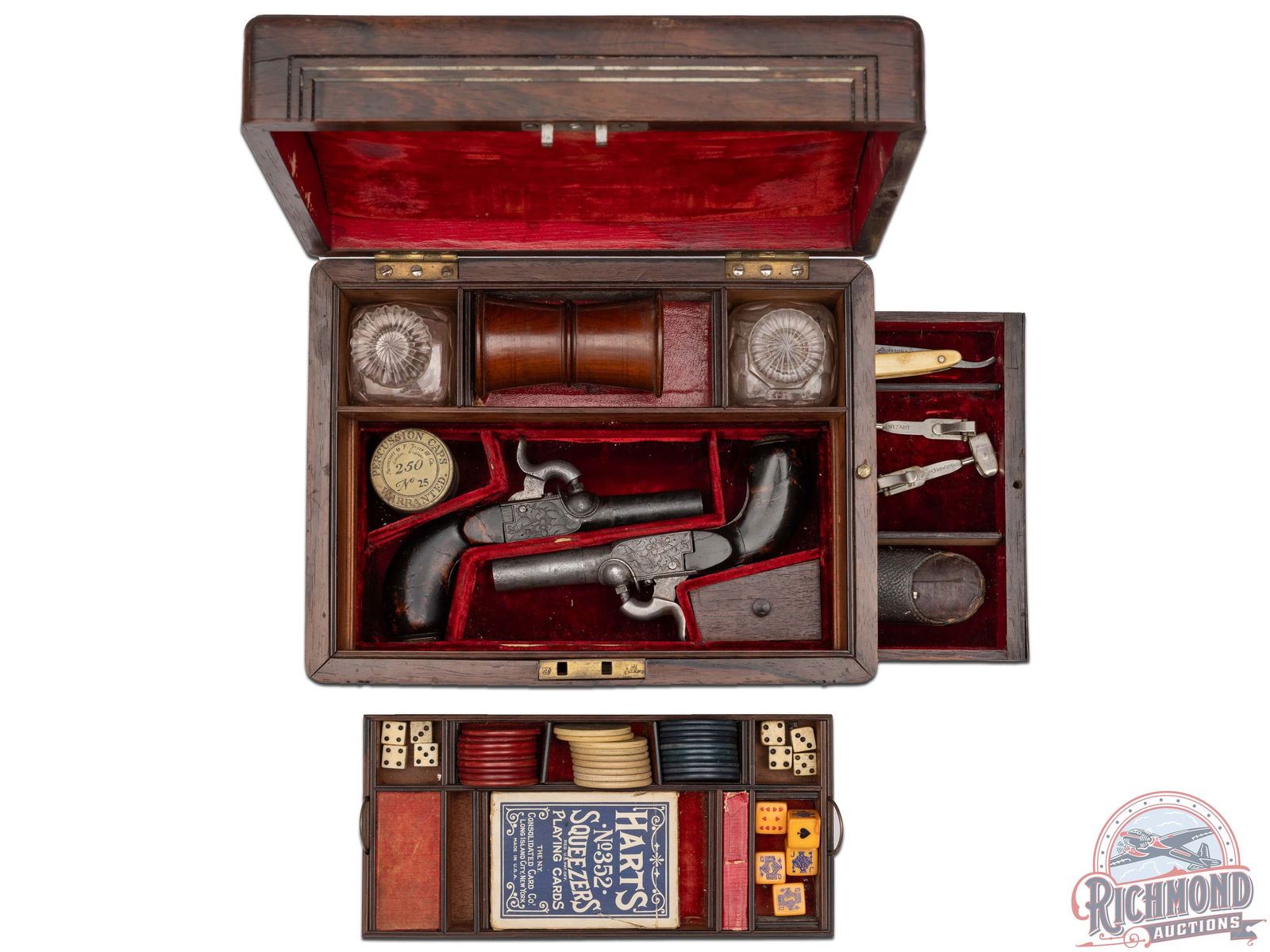 Lot 154 NICE Vintage Professional Gambler's Kit from the 1870's with Pair of Percussion Pistols