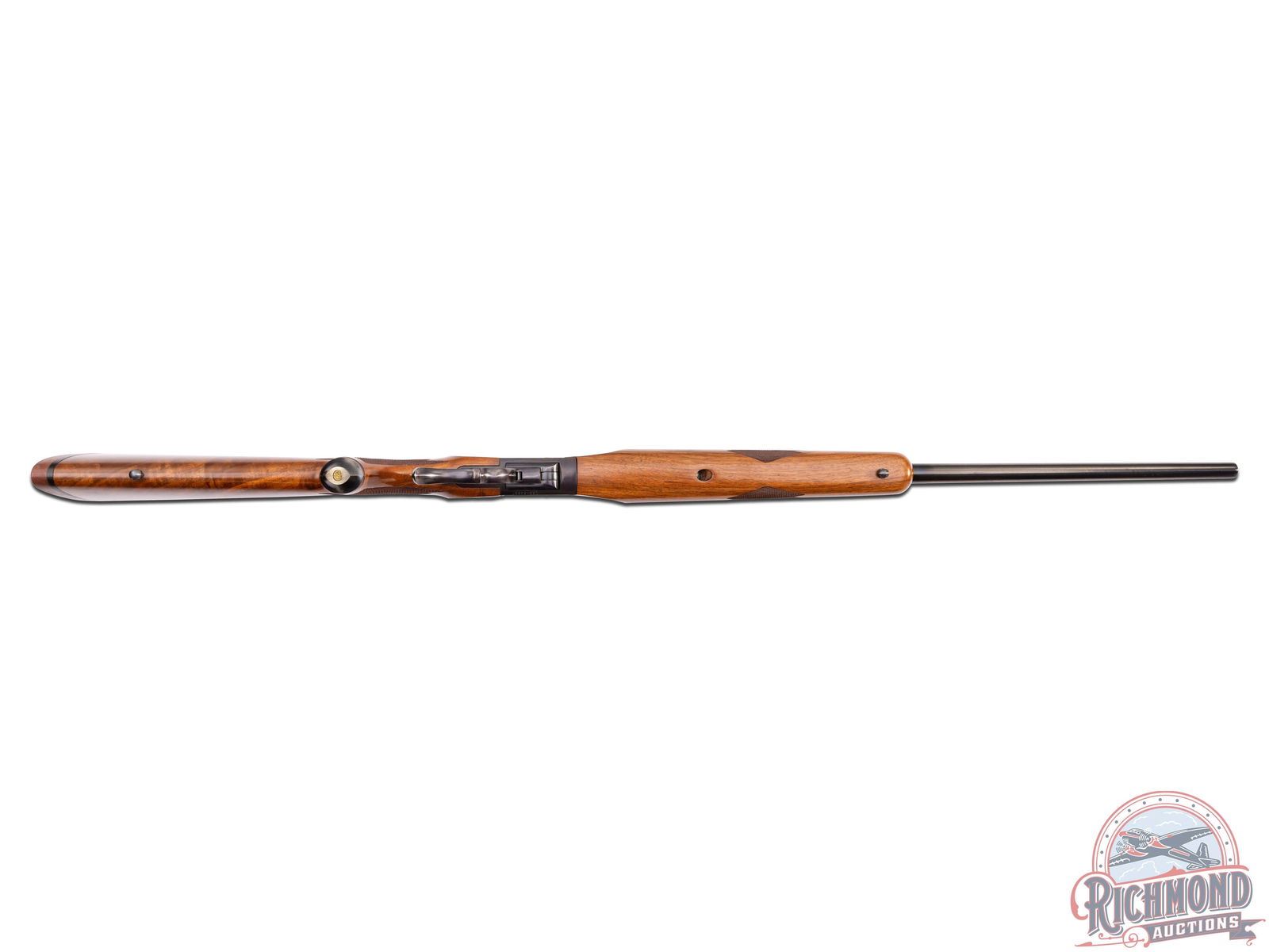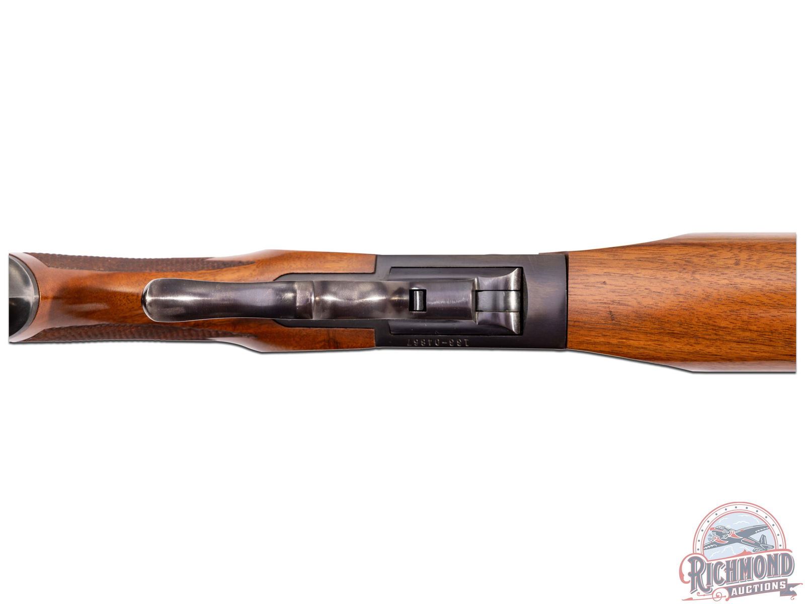 Manufactured in 1993 by Strum Ruger & Co. Features a 26" blued sightless barrel with the two line Ruger address and quarter rib factory scope base. Blued receiver with a falling block breech action with artillery-style breechblock and under-lever. Tang mounted safety lever. Beautiful satin walnut stock with deep checkering on the pistol grip and semi- beavertail forearm. Fitted with sling bolts studs, factory black lined red rubber recoil pad and factory metal pistol grip cap with gold tone Ruger medallion. LOP: 13-7/8". CALIBER: 22 HORNET. S/N: 133-04867. FFL STATUS: Modern.
