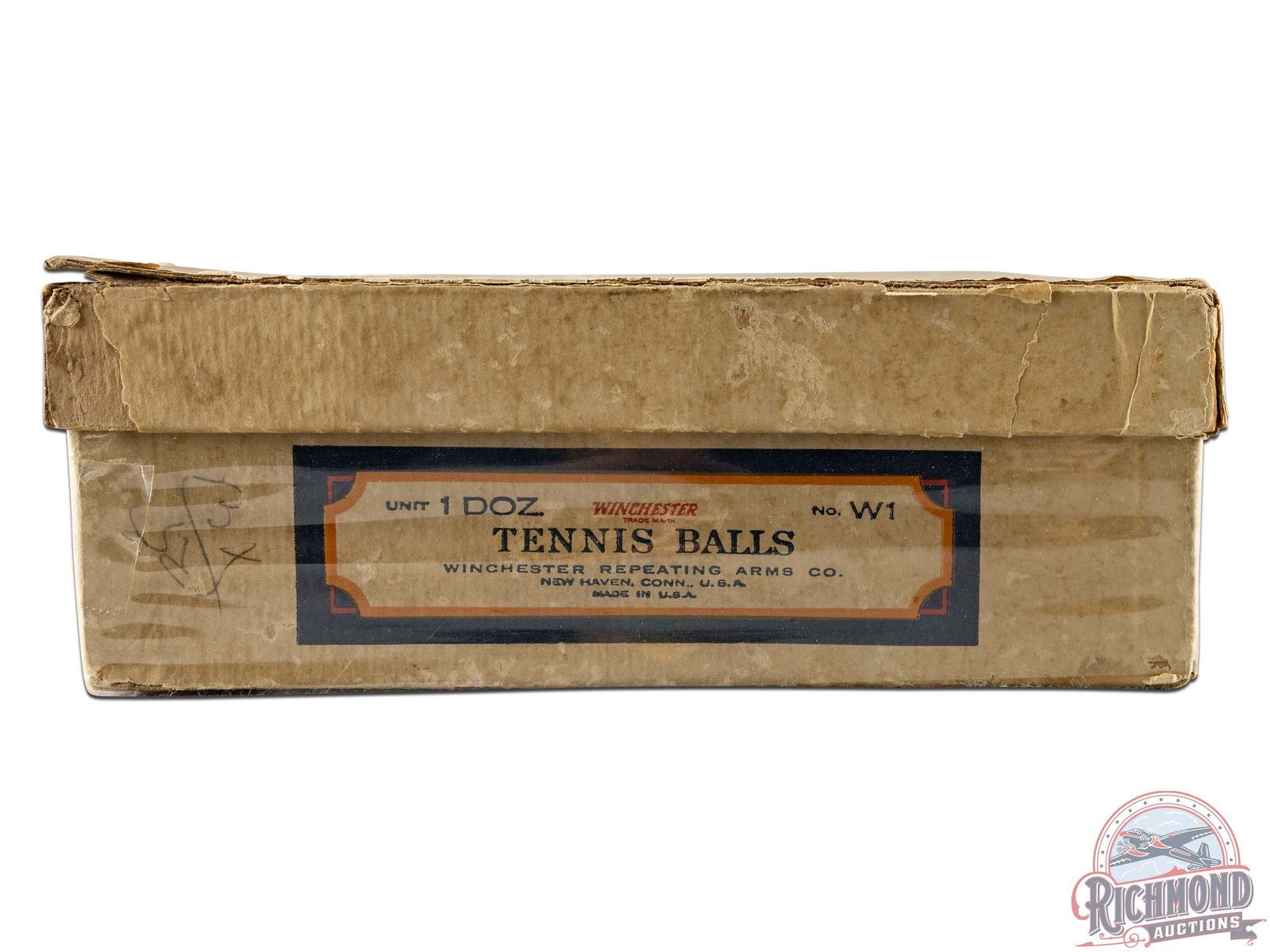 Lot 368 Scarce Winchester Model No. W1 One Dozen Tennis Balls "Like A Rifle Shot" Original Cardboard Box