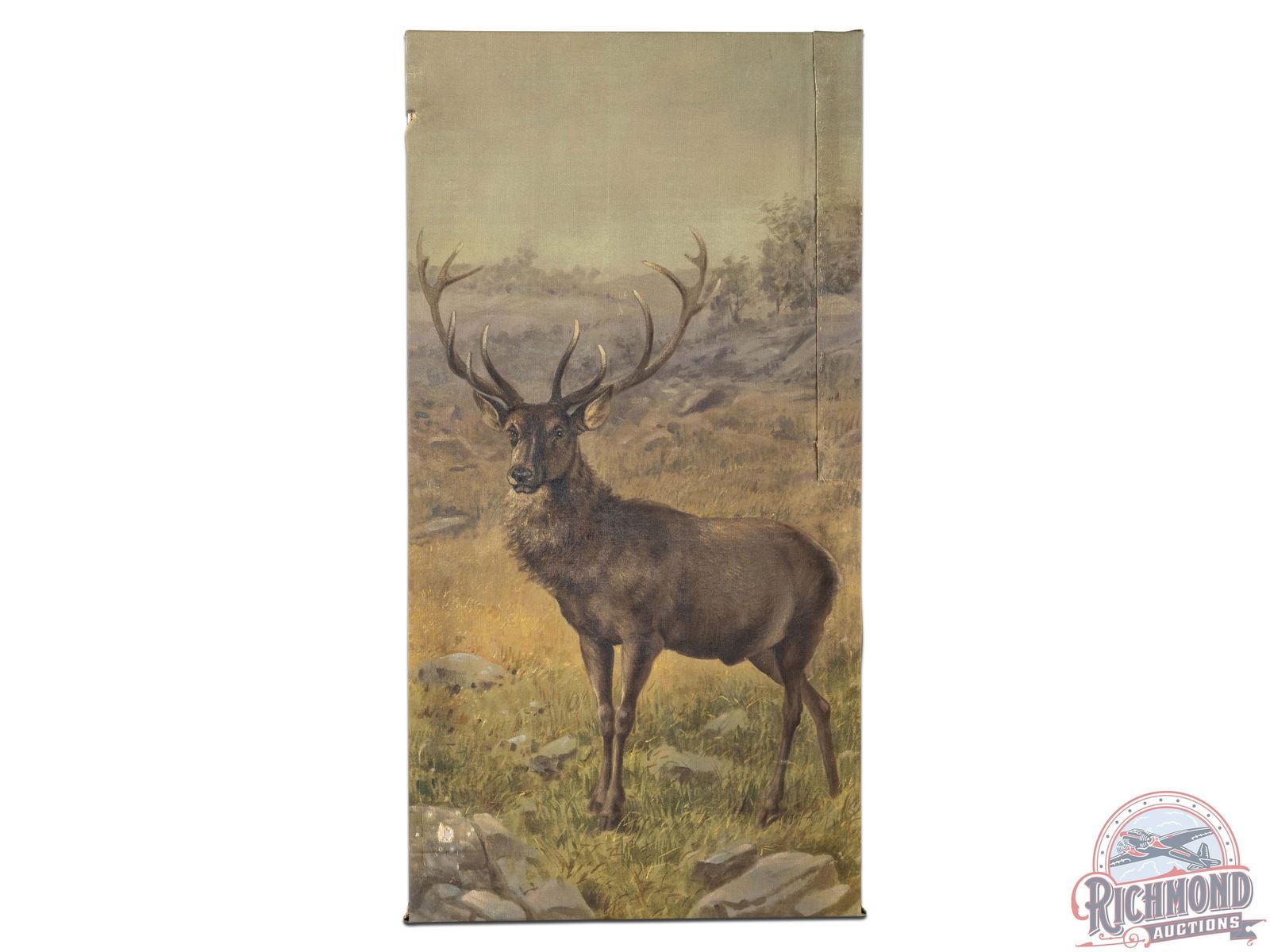 Lot 750 1900's Original Muslin Tapestry Painting of Large Red Stag Deer Resembles "The Bull Elk"