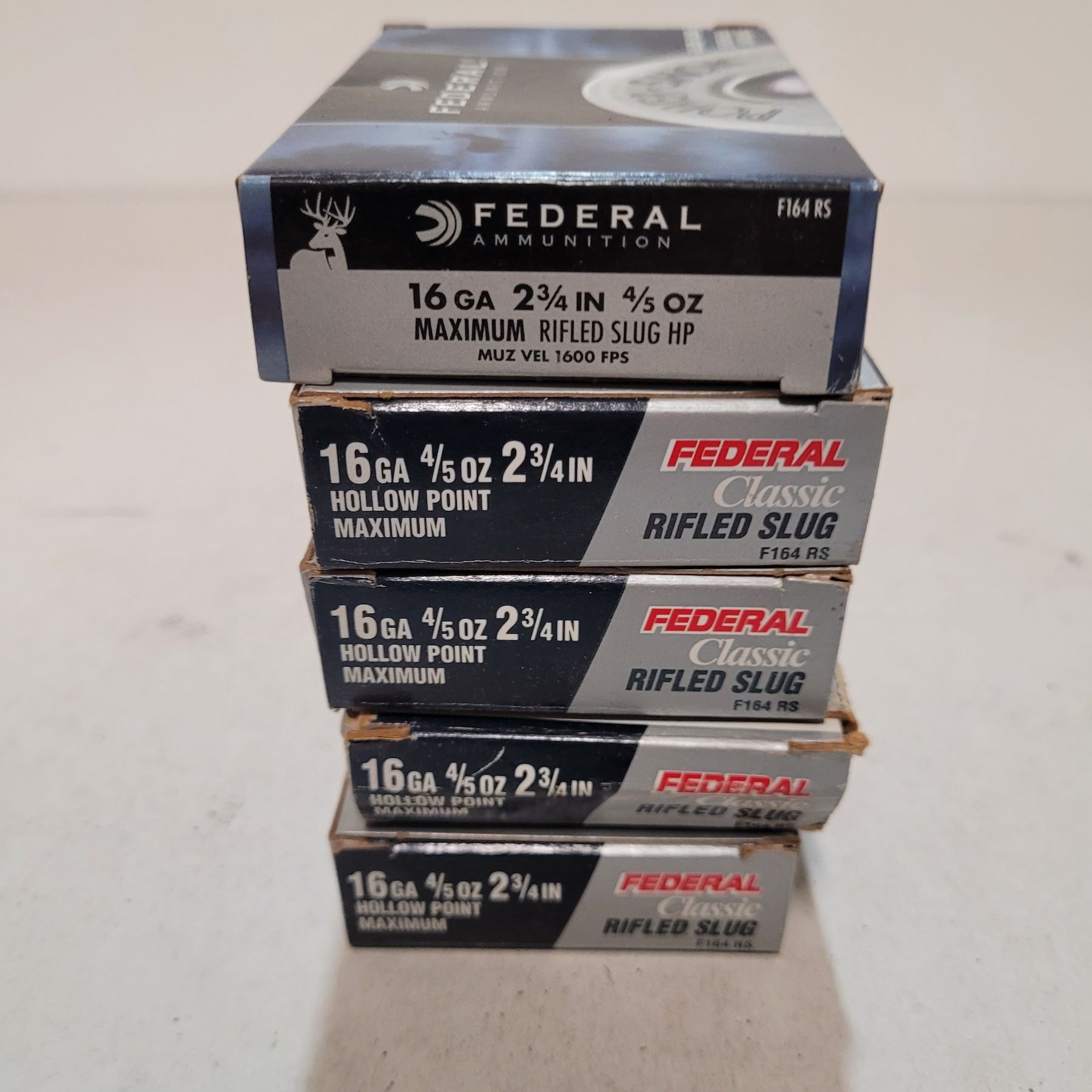 Five Boxes of Federal 16ga 2 3/4" Lead Slugs