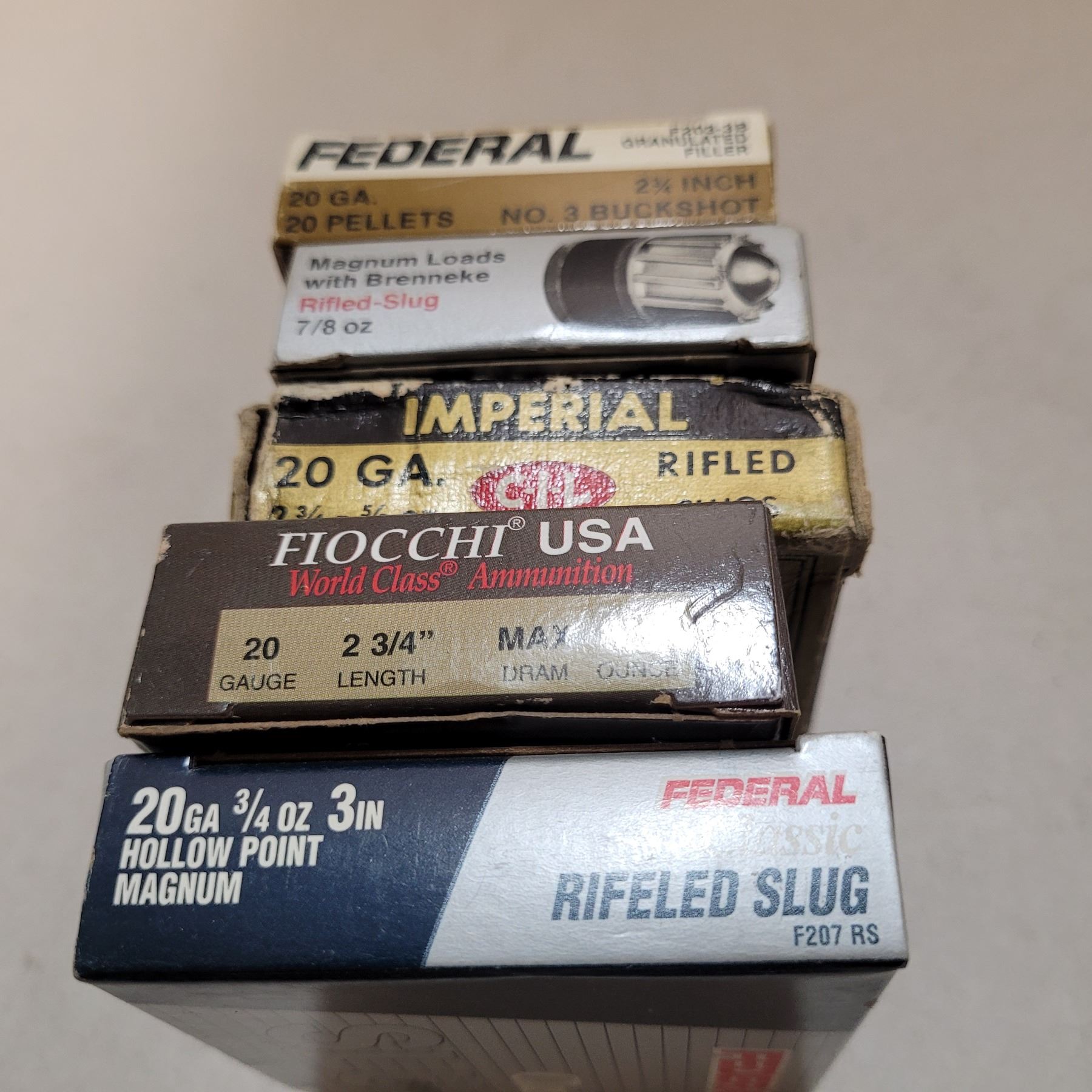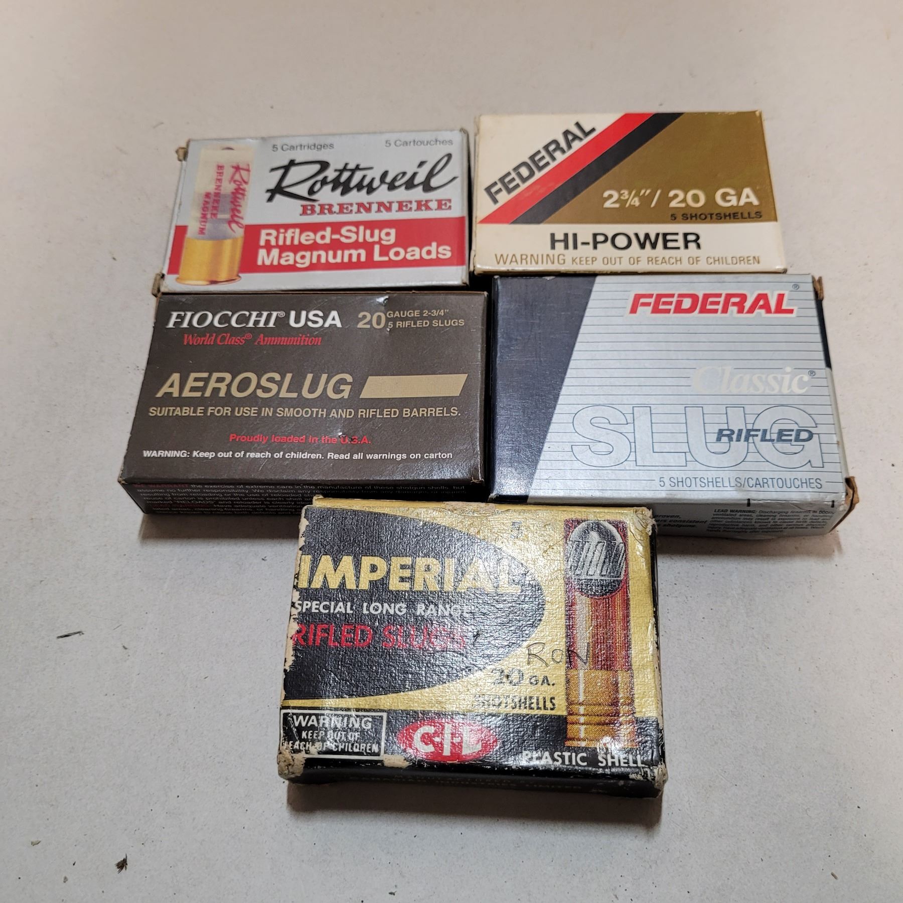 5 Boxes of Mixed Brands of 20ga 2 3/4" Lead Slugs