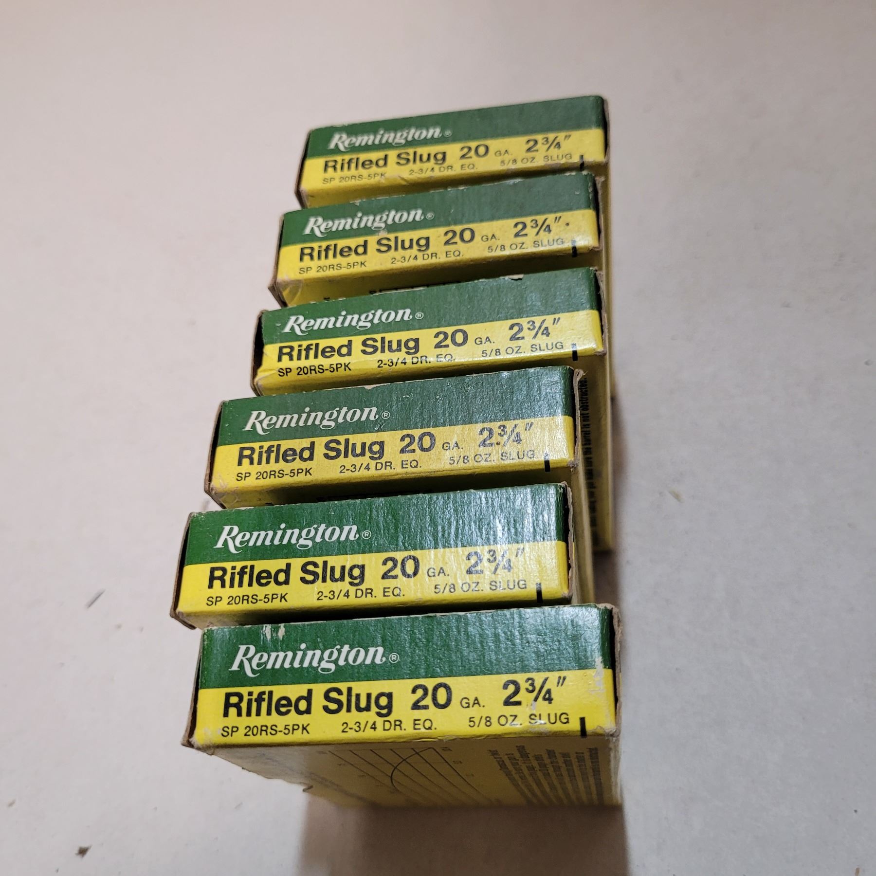 6 Boxes of Remington 20ga 2 3/4" Lead Slugs