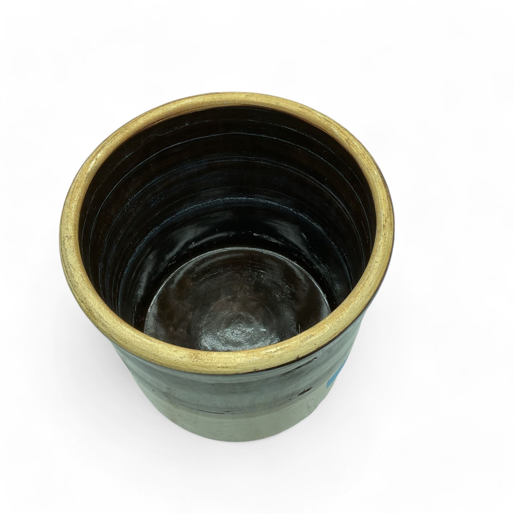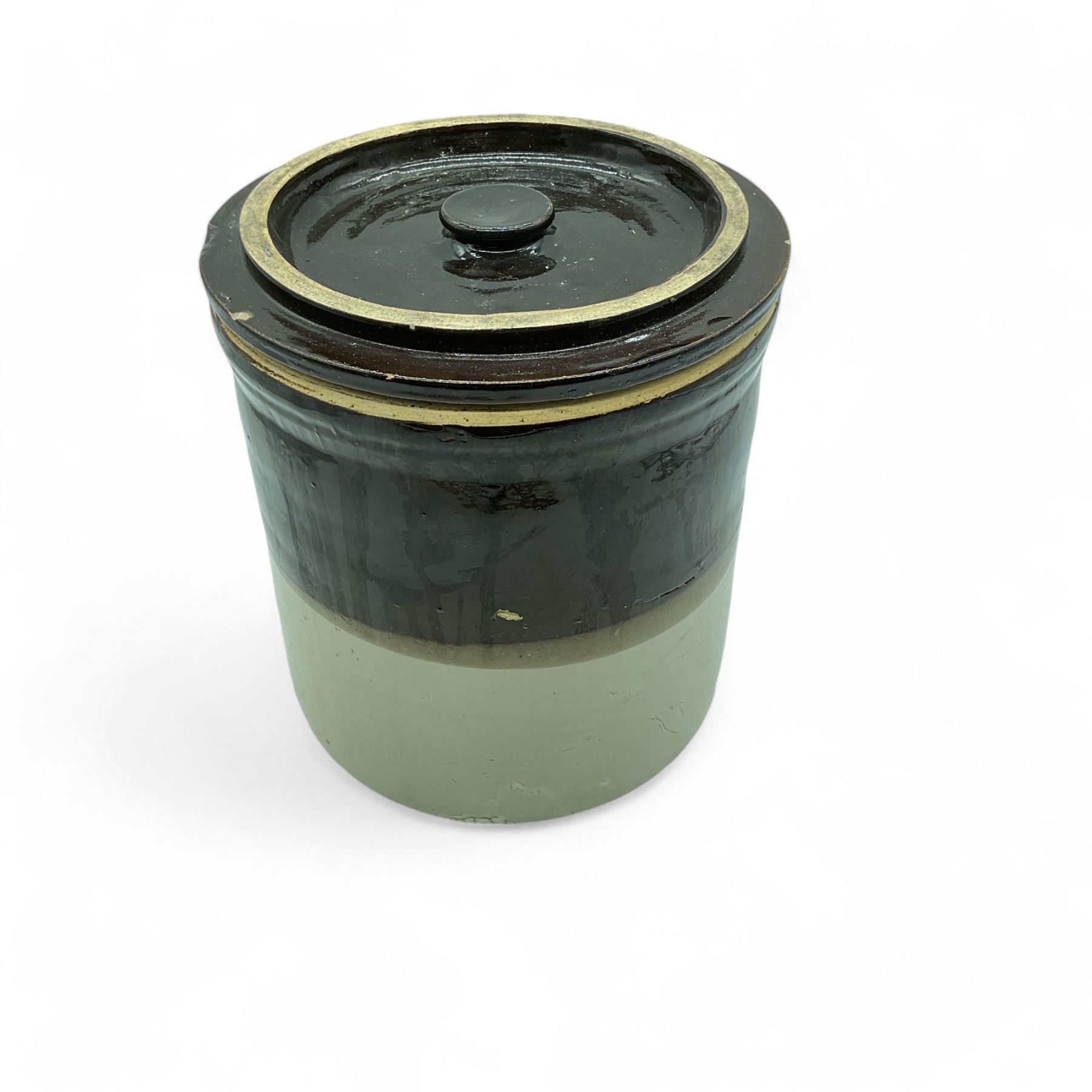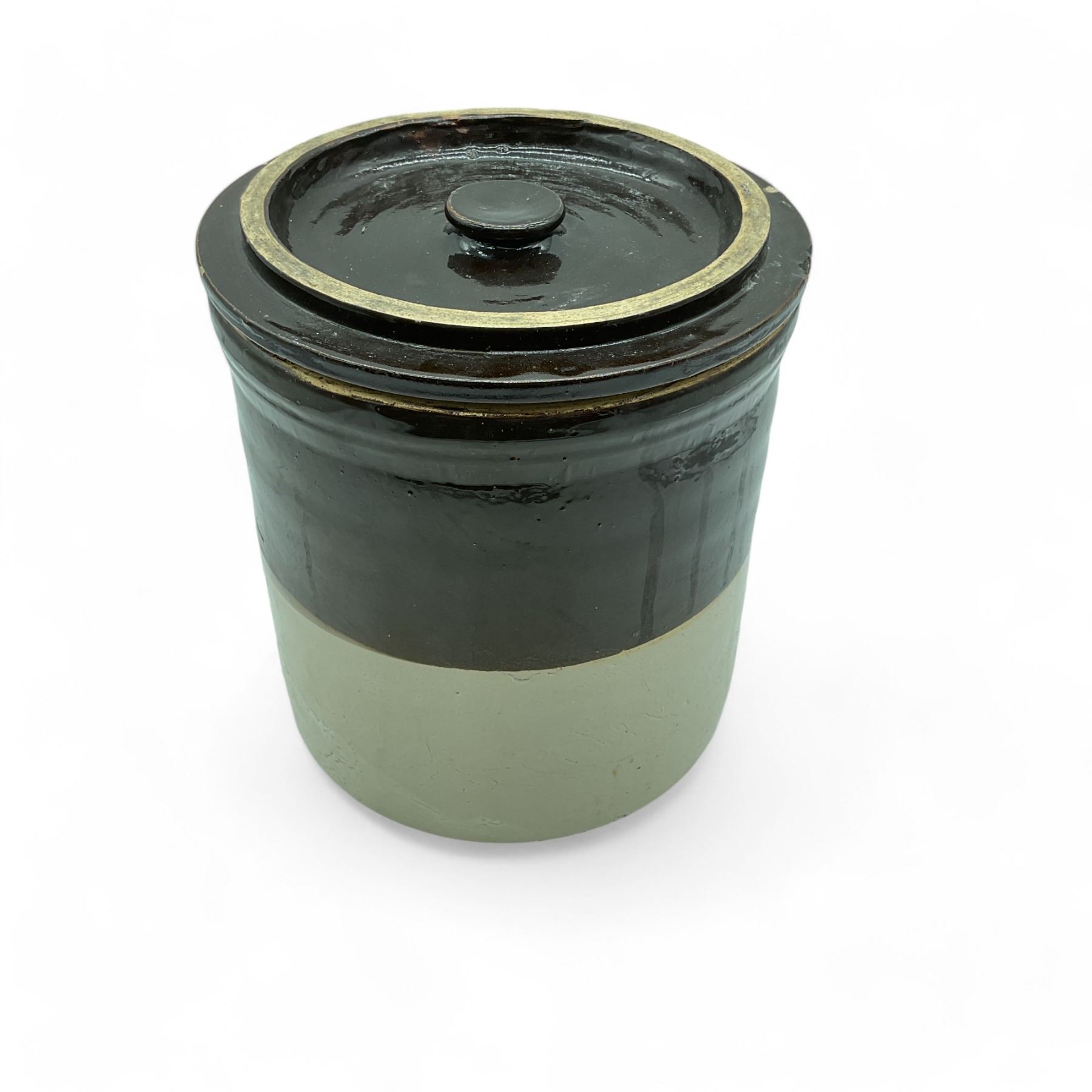 Stoneware Crock with Lid, 9-1/4" Tall x 8-3/4" Diameter (at widest part), No Markings