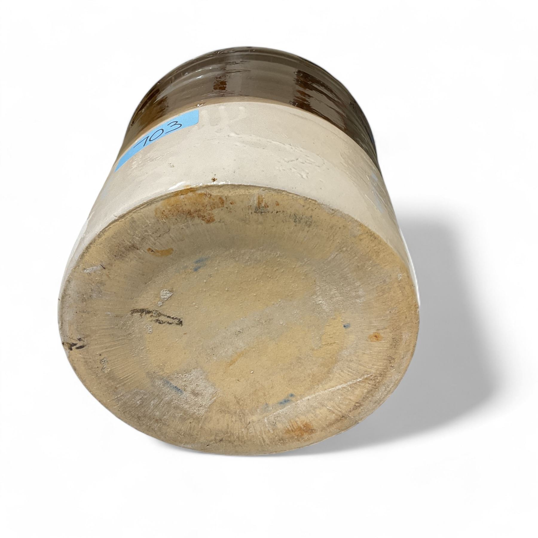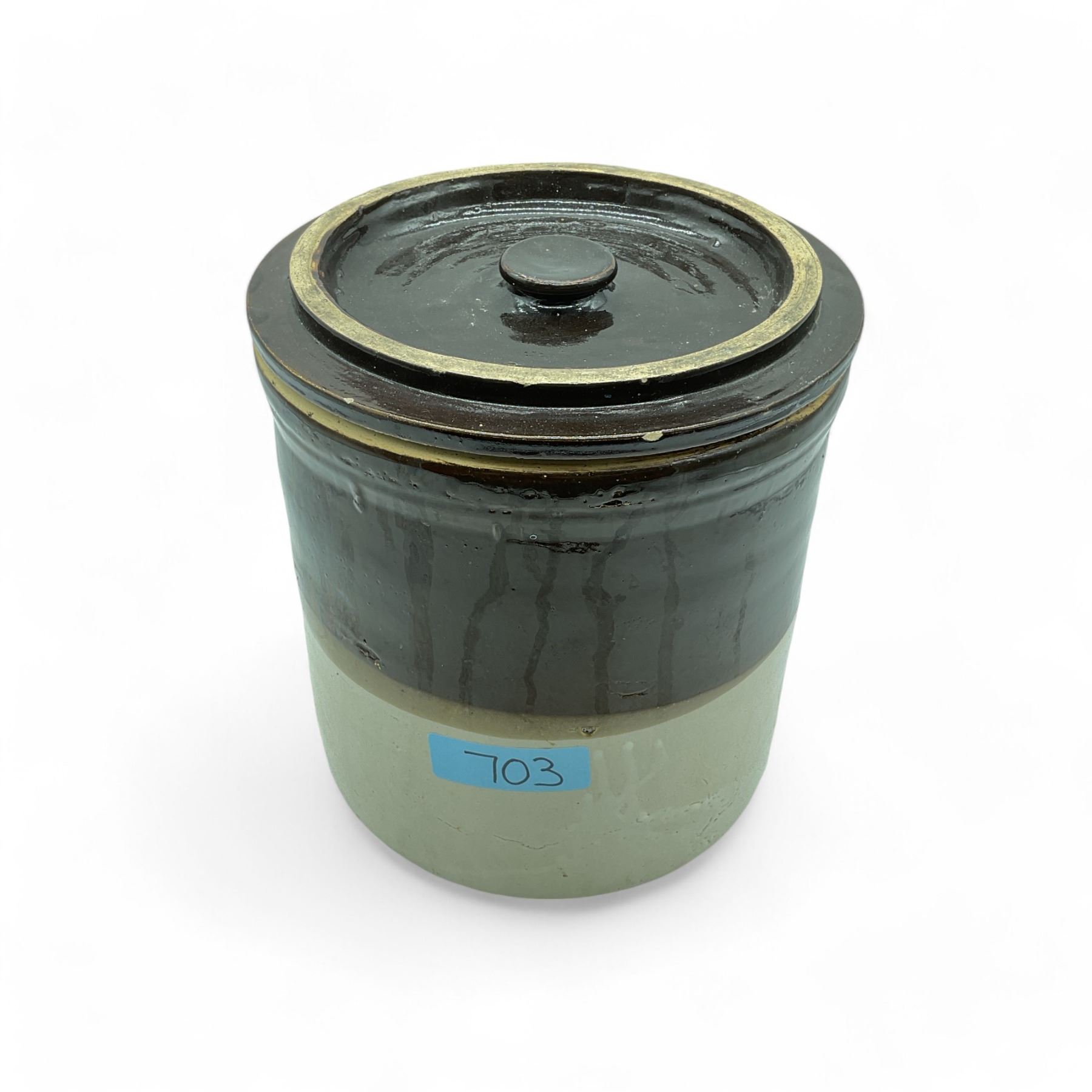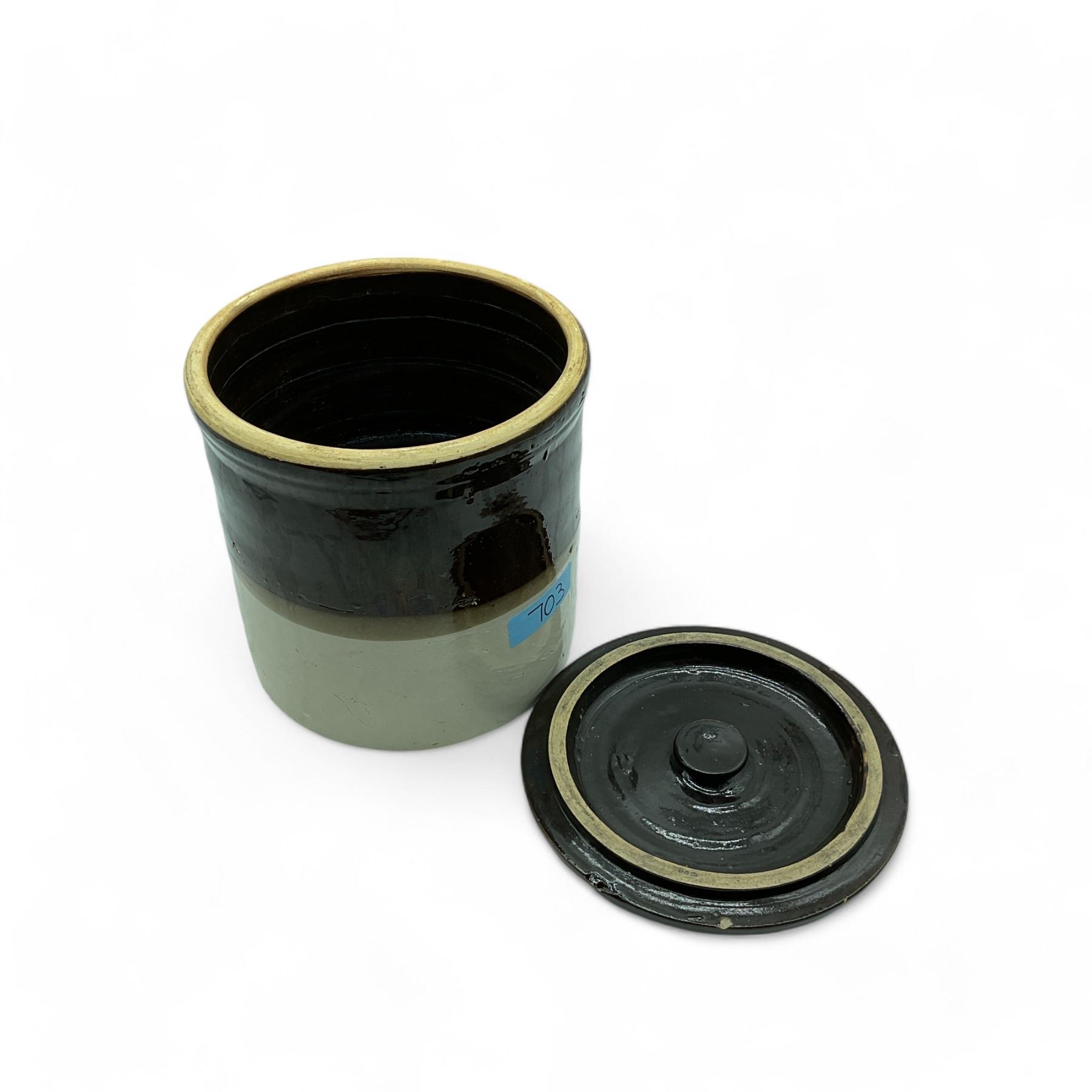 Lot 703 Stoneware Crock with Lid, 9-1/4" Tall x 8-3/4" Diameter, No Markings