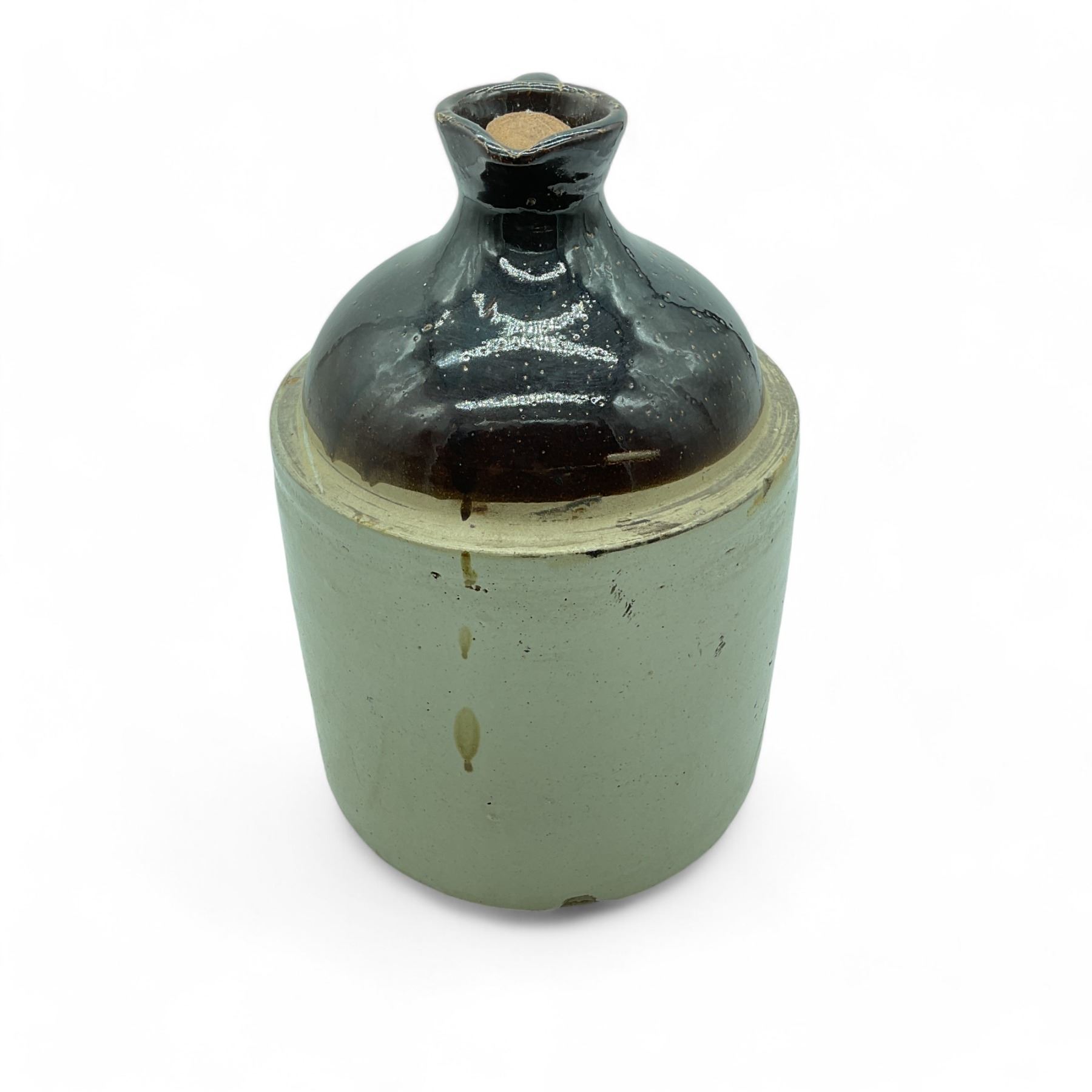 Stoneware Jug with Wood Plug Stopper, 12-3/4" Tall x 9" Diameter (at widest part), No Markings
