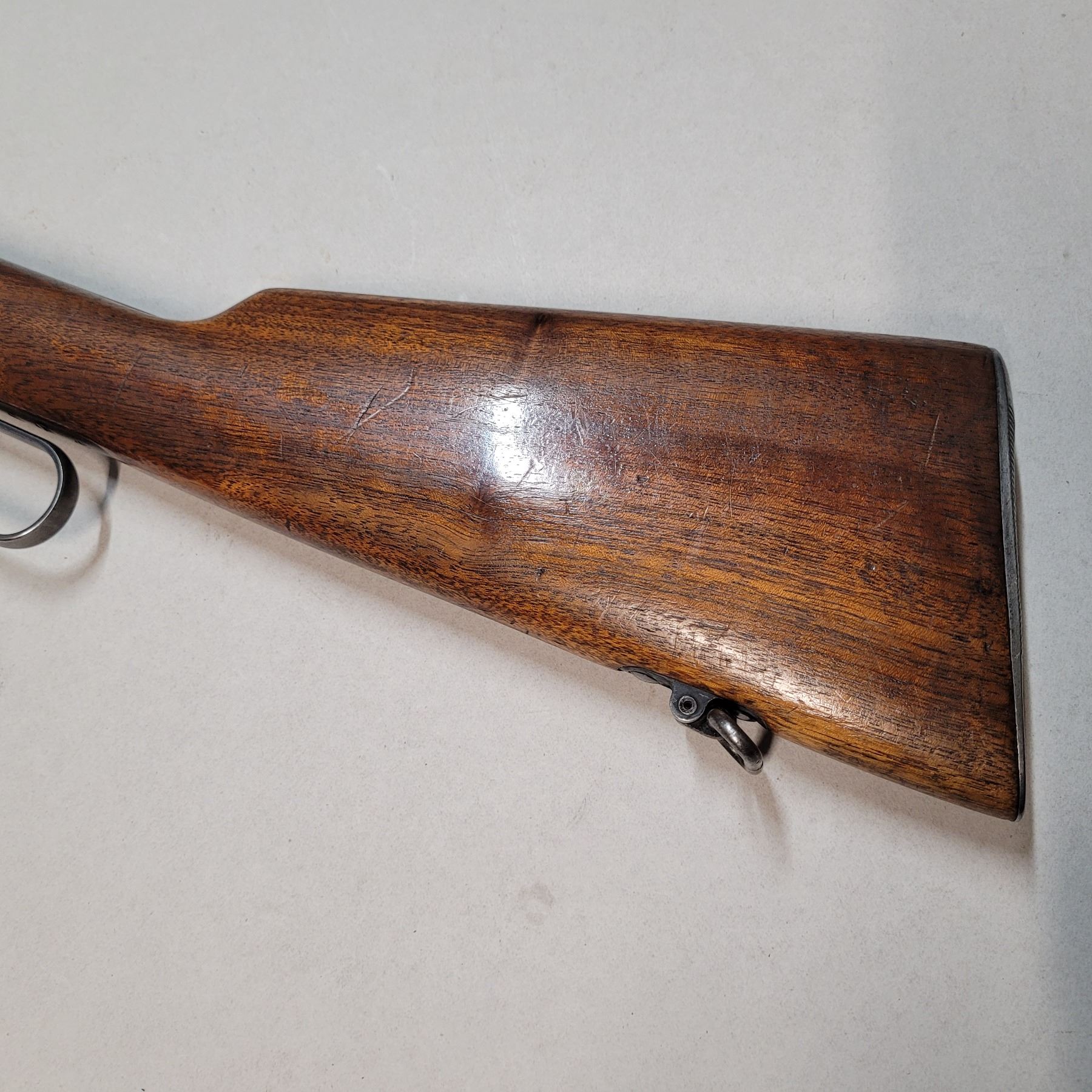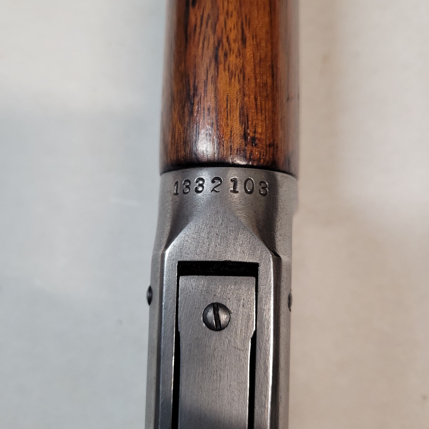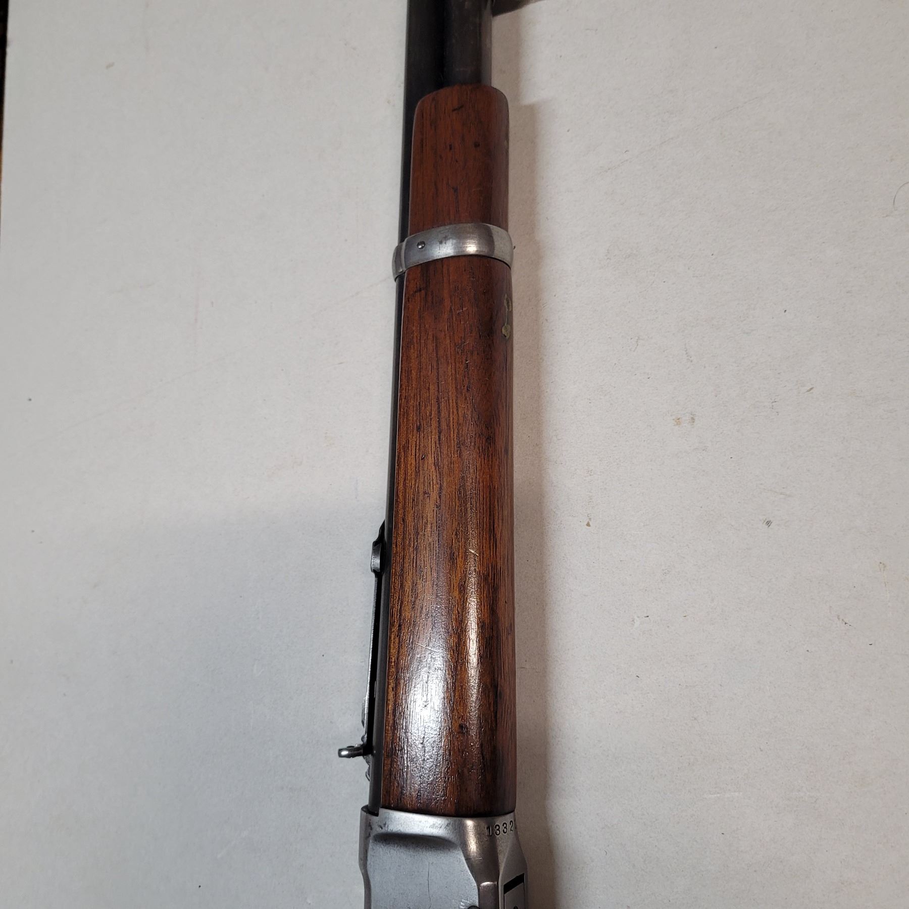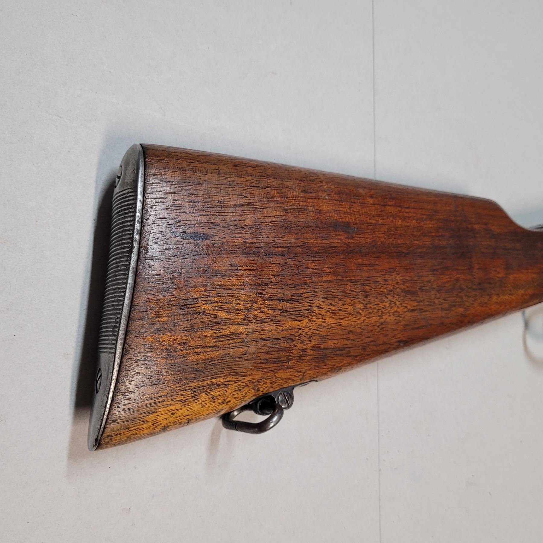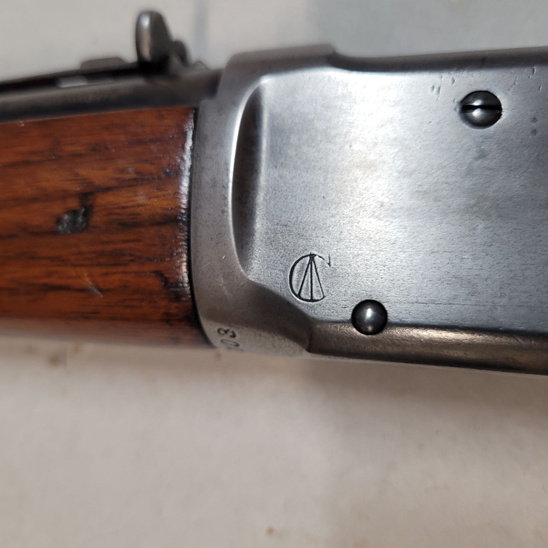 This rifle has the C Broad Arrow markings of the Canadian Military on the receiver. Some of these rifles also had the stamp on the buttstock and forearm. The stamp on the forearm is barely visible near the barrel band, however there doesn't appear to have one on the buttstock.