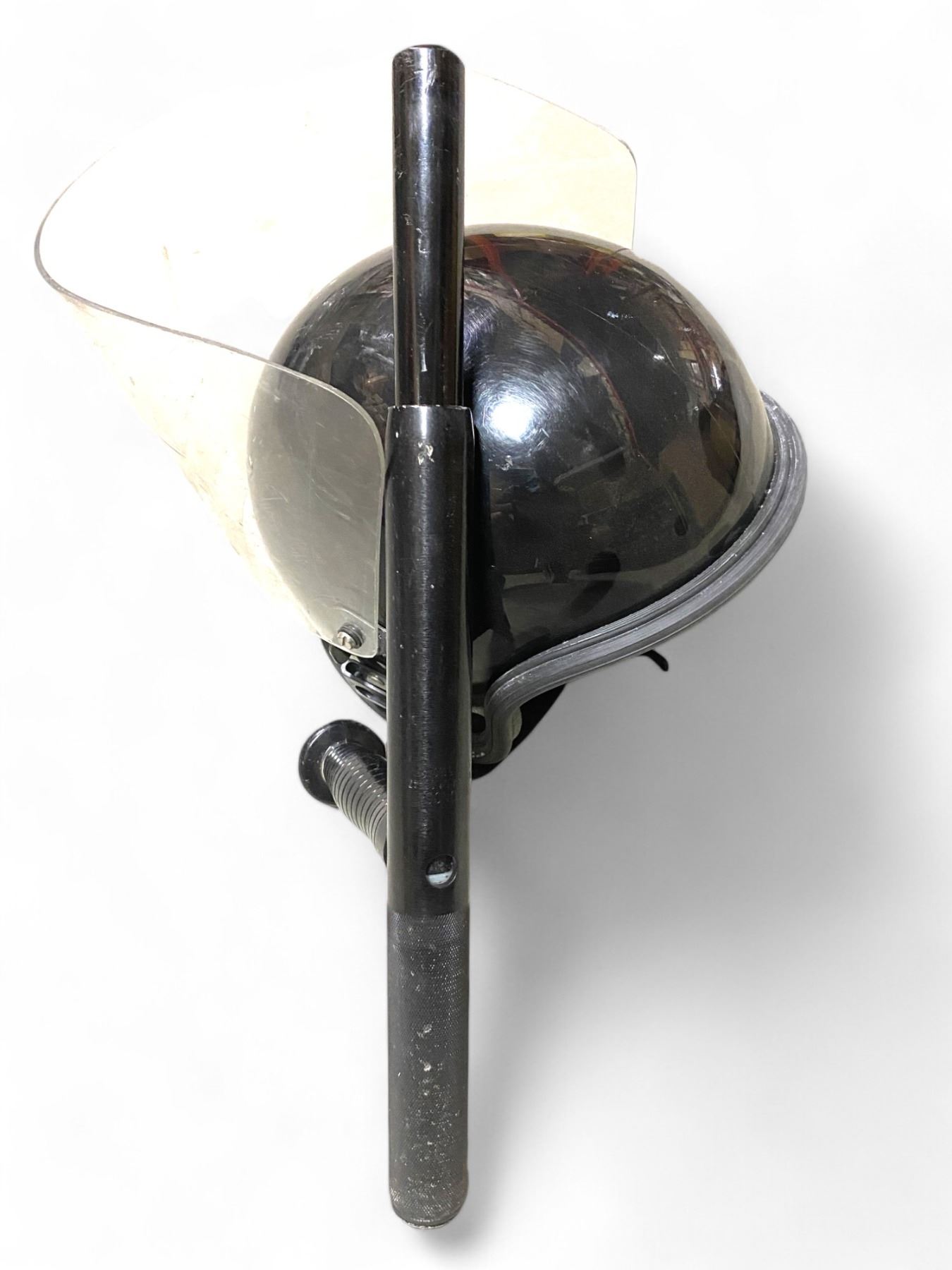 Genuine British Riot Police Protective Helmet - Black, These are fully adjustable. These are genuine police issue in a grade one condition, perfectly usable but will show signs of use. The Model 1101 Baton has a knurled grip for enhanced baton retention and a palm grip side-handle. It also features the Trumbull Stop for increased baton retention