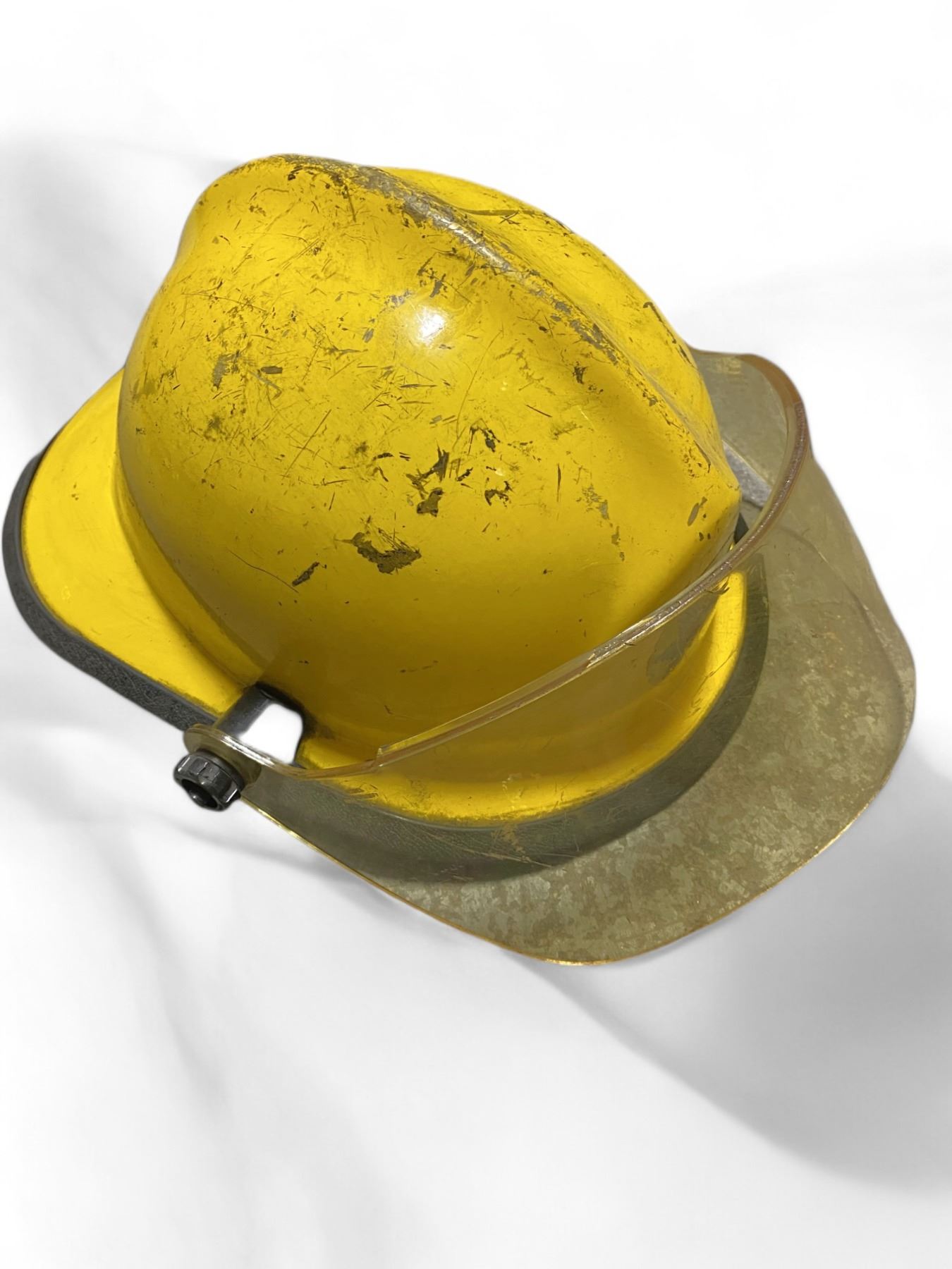 The MSA Cairns 660C Metro Composite Fire Helmet with popular retractable Defender Visor, which can be easily raised or lowered with a gloved hand. *These are in used condition with signs of wear and heavy usage in the field and sold as novelty only*