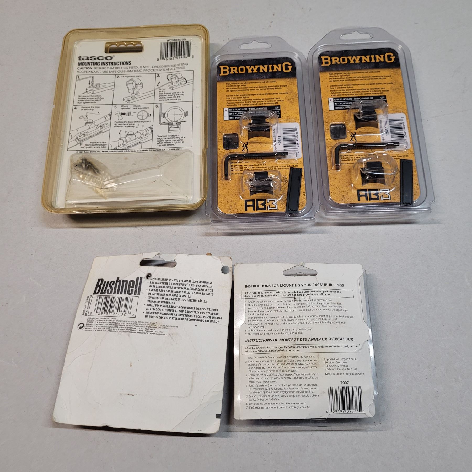 Assortment of Scope Rings, Browning, Bushnell, Tasco and Excaliber