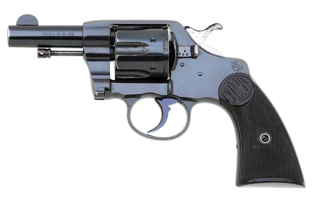 serial #232014, 38 Colt, 3'' barrel with an excellent bore. This lovely civilian New Navy revolver remains in excellent condition and features the uncommon 3'' barrel. This gun retains about 97% original blue showing light edge wear, the backstrap thinned to a brown-blue patina, and a few handling marks. The face of the trigger is gray, the sides of the trigger and the hammer spur are thinning although strong fine blue still remains while the sides of the hammer are bright. The checkered hard rubber factory grips are assembly numbered to the gun, the feature ''COLT'' and remain in very good condition showing light wear on some of the diamond points and handling marks. This gun features fixed sights, matching assembly numbers, and factory rework numbers on the cylinder and extractor star. It includes a factory letter indicating it shipped as described on June 6, 1904 to Marshall Wells Hardware in a one gun shipment. No specific address was given but it list four U.S. and one Canadian location. A wonderful example of the New Navy in a desirable configuration. (8A11616-2) {C&R} (1200/1800)