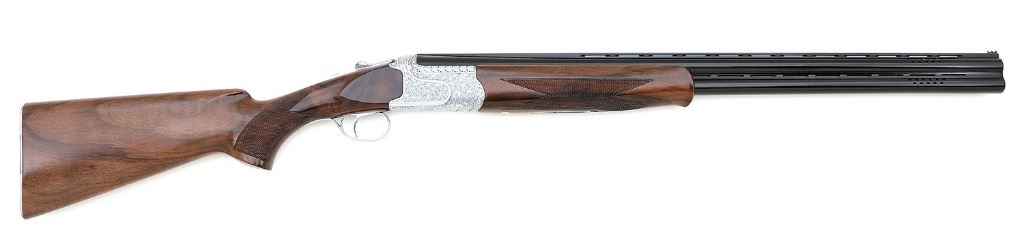 serial #06S8550, 12 ga., 28” ventilated rib screw-choked ported barrels with bright excellent bores. The barrels retain 99% blue with a couple of specks of fine oxidation staining. The coin-finished frame and forend iron are in excellent condition and are embellished with SGr17 pattern floral engraving. The checkered walnut pistolgrip stock and forend rate about excellent aside from a tiny handling mark or two and features a length of pull of 14 1/2”. The skeleton-style buttplate remains bright with more scroll engraving and features an inlaid bronze colored double eagle head. The shotgun features a single selective trigger, automatic safety, fiber optic front bead, ejectors, and the lever rests slightly right of center. A lovely Turkish made gun with included modified and improved modified screw in chokes, build sheet, and related papers. (10A11552-2) {MODERN} (1500/2000)