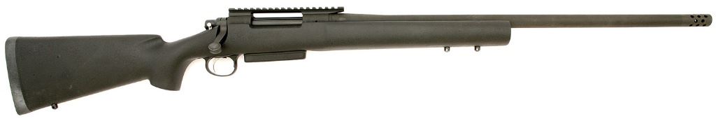 serial #G6705146, 338 Lapua, 26" heavy barrel with integral compensator and an excellent bore. The metal surfaces retain about 99% original parkerized finish with just a few light handling marks visible. The rifle is fitted in an HS Precision black kevlar reinforced fiberglass target stock that has an aluminum block and rates excellent. There are no provisions for open sights but a Nightforce mil-spec picatinny rail is mounted to the receiver. Rifle features an adjustable 40X trigger and has a detachable box magazine. One spare magazine is included. This is a superb long range tactical rifle designed and built to withstand any environment and when coupled with the right optics will exceed your expectations. (11739-127) {MODERN} (1800/2200)