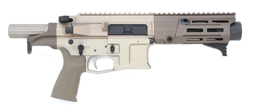 serial #MXM-18-17712, 7.62x39mm, 5 1/2'' barrel with a bright excellent bore. The metal surfaces of this innovative PDW retain about 99% original black nitride and flat dark earth hard anodized finishes with a tiny spot of wear on the lower edge of the hand stop exposing the alloy beneath. The flat dark earth Reptilia CQG pistolgrip rates excellent. The pistol features an M-Lok free-floated forend with offset QD sling mounts, Hatebrake muzzle booster, ALG enhanced trigger group, Radian ambidextrous safety lever, Radian Raptor LT ambidextrous charging handle, ambidextrous magazine releases, flared magazine well and a full-length Picatinny rail at the 12 o'clock position. Included is the original box, manual and paperwork, Duramag 20-round magazine, fired case, cable lock with keys. The action appears to function well mechanically and this pistol is sure to turn heads at the range. (23A11739-141) {MODERN} (1500/2000)