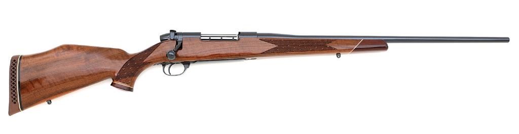 serial #H146013, 257 Wby Mag, 24'' barrel with an excellent bore. The metal surfaces retain about 99% original blue with a few very light handling marks. The bolt body remains bright and is electro-pencil numbered to the rifle. The checkered walnut Monte Carlo stock rates excellent with a few very light handling marks. The stock features the factory rosewood forend tip and gripcap and is equipped with the ventilated recoil pad. There are no provisions for open sights, but the receiver is tapped and included are a set of Redfield two-piece bases and Leupold 1'' rings. An excellent condition example in a terrific caliber awaiting your choice of fine optics. (4A11718-4) {MODERN} (1000/1500)
