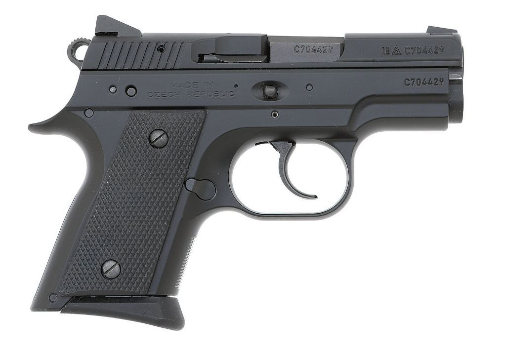 serial #C704429, 9mm, 3” barrel with a bright excellent bore. The metal surfaces of this always difficult to source and now factory discontinued sub-compact pistol retain about 99% plus original black polycoat finish and the barrel retains about 99% original blue with a touch of light operational wear on the chamber of the barrel. The factory checkered rubber grips rate excellent. The pistol is equipped with no-snag photoluminescent night sights which glow strongly, and a frame mounted decocking-only lever. It includes the factory hard case, manual, paperwork, 2018-dated factory test target, sight adjustment tool, bore brush, cleaning rod, cable lock with keys, and one factory 10-round magazine, and one factory 14-round magazine. A like-new-in-box example of these popular and uncommon CZ-75 variants which is sure to only increase in value. (23B11739-14) {MODERN} (1000/1500)