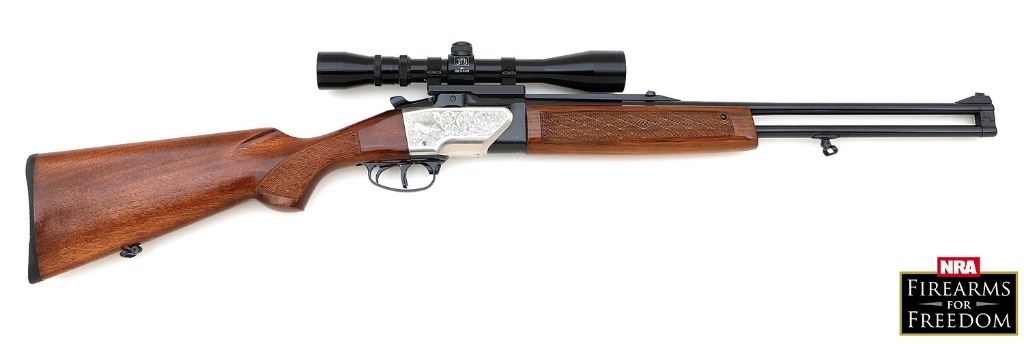serial #3-4400068/416888, 7x57R, 23 1/2" barrels with bright, excellent bores. The barrels, top lever, and trigger assembly retain about 99% original blue with a few light handling marks. The coin finished frame rates excellent and features factory etched deer game scenes on either side. The walnut stocks rate excellent as well and feature skip-line checkering to the forearm and pistolgrip buttstock. The buttstock also features a left side cheek rest and has the factory hard rubber buttplate. The original sights remain intact and mounted via a factory base is a European BMB 3-9x38mm riflescope. The scope features a German No. 4-style reticle with excellent optics. Rifle also features set triggers and sling swivels. The original box is included which includes a factory hang-tag and a tooled leather sling. This is an excellent condition European-styled sporting rifle package. (4A11768-39) {MODERN} [NRA Firearms For Freedom] (800/1200)