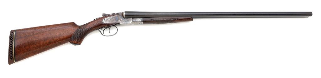 serial #FW172605, 12 ga (2 3/4''), 30'' armor steel barrels choked improved modified and full with bright near excellent bores showing a few sparsely scattered tiny dings. The barrels retain perhaps 75-80% original blue appearing stronger under ambient light with overall toning to a medium gray-brown patina and showing some scattered old surface oxidation. The action and lockplates retain about 80-85% nice original case-hardened colors that remain mostly vibrant showing a little mild brown speckling and most of the loss along the fences and bottom metal toning to a nice silvery case-hardened patina. The triggers, triggerguard and safety retain about 80% original bright blue flaking to gray-brown. The checkered capped pistolgrip walnut buttstock and splinter forend remain in very good plus condition retaining most of their original varnish and showing a couple of minor hairline cracks forming behind the lockplates, a couple tiny flakes around the edges and scattered light dings. The hard rubber pistolgrip cap is intact, its screw a later replacement. Length-of-pull to the Sheaffer Bros retailer-marked Pachmayr ventilated red rubber pad is 14 3/8'' with drops of 1 1/2'' and 2 1/4''. The gun is equipped with automatic safety, double triggers, extractors and medium brass bead front sight. Weight is 7 lbs. 6 oz. and the barrels lock-up solid on-face with top lever right-of-center and the action seems to function well mechanically. A solid big 12 L.C. (13B11778-11) {C&R} (800/1200)