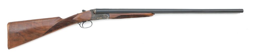 serial #G00287A, 12 ga., 28'' barrels choked modified and improved modified with bright excellent bores. This handsome Italian-produced shotgun remains in as-new condition and features a lovely case-hardened frame adorned with laser-engraved tight foliate scroll with a gold colored ''WEBLEY & SCOTT'' on both sides. The European walnut English-style buttstock and splinter forend feature sharp checkering and the walnut buttplate features the Webley & Scott ''winged clay'' logo and provides a 14 5/8'' length of pull with drops of 1 1/2'' and 2 1/2''. The shotgun features a single selective trigger, robust ejectors and the action appears to function well mechanically. Included is the original padded plastic hard case, manual, barrel and buttstock sleeves and the factory shipping box. This lovely shotgun is consecutively-numbered with the next lot. (23B11739-3) {MODERN} (800/1200)