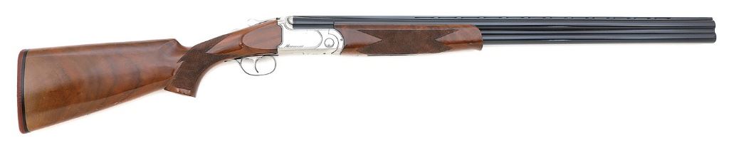 serial #186931, 12 ga., 30'' ventilated rib screw-choke barrels with bright excellent bores. The barrels retain about 97% original blue with scattered tiny specks of fine oxidation staining and light handling marks. The balance shows a bright coin finish with tiny spots of fine oxidation staining on the frame that is embellished with fine borderline engraving. The checkered pistolgrip walnut stock and forend rate very good plus with overall light handling marks and has a length of pull of 14 3/4'' to the factory buttpad. The shotgun locks up tight and remains on-face featuring an adjustable single selective trigger, non-automatic safety, inertial hammers, and is sighted with a single white blade-style front sight. Included are a factory hard case, Allen wrench, choke wrench, and five chokes, (1) cylinder, (1) improved cylinder, (1) full, (1) improved modified and (1) modified. (10A11690-29) {MODERN} (800/1200)