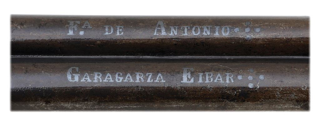 serial #2, 7mm RF, 3'' four-barrel cluster with oxidized bores showing some remnants of visible rifling. The barrels retain about 40% original bright blue with the balance flaked to a pleasant deep gray-brown patina showing a little old oxidation staining and maker's name and Eibar location nicely inlaid in silver along both of the top barrels. The frame shows remnants of silver finish mostly toning to pewter gunmetal with some mild brown oxidation staining. The hammer back spring retains good straw color and the smooth walnut grips are pencil-numbered to the gun and remain in near excellent condition with strong antique varnish, light handling marks and nice grain figure. The barrels lock up well and feature a transverse bar release and, perhaps most prominently, there is a large ejector rod housed along the right side of the frame, the rod itself with some vestiges of subtle fire blue. The nose sometimes does not rotate reliably and the hammer otherwise seems to function well mechanically. An interesting copy with a somewhat bulky and industrial-looking but useful ejector rod. (13B11802-7) {ANTIQUE} (700/900)