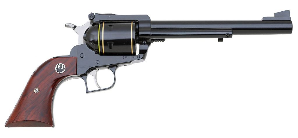 serial #SB-00142, 44 Magnum, 7 1/2" barrel with a bright excellent bore. This handsome Super Blackhawk comes from the personal collection of Stephen Sanetti, former President and COO of Sturm, Ruger & Co., and includes a certificate of authenticity verifying that it was acquired by Mr. Sanetti during his tenure as a member of Ruger's now-defunct ''low serial number'' program, featuring his number ''142''. It appears as-new-in-box, showing only perhaps a light storage mark or spot of old dried lubricant, with some of the areas toning lightly to plum. The smooth hardwood grip panels with Ruger Eagle medallions remain excellent and the hammer retains all of its rich top bluing. It retains the standard open sights and timing and lockup remain excellent, and included is the factory box, correctly end-labeled and numbered to the gun, manual, paperwork, factory fired case, pistol rug, and a factory invoice indicating that this gun left the factory in January of 2009. An excellent low-number Super Blackhawk sure to please the Ruger collector or big bore shooter alike. (26A11655-28) {MODERN} [The Stephen Sanetti Collection] (700/900)