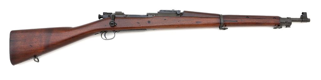 serial #399746, 30-06, 24'' 9-09-dated S.A. barrel with a bright excellent bore. The metal surfaces retain 98-99% arsenal reapplied gray-green parkerized finish with light handling marks and spots of pinprick to light pitting and minor high edge wear. The bolt is not marked and retains a strong blue finish and the magazine cutoff and rear sight retain strong blue as well, while the triggerguard shows even mix of blue and brown patina. The straight grip stock rates very good plus as lightly cleaned with expected remnants of service handling wear and appearing devoid of any markings. The rifle has standard sights with the rear in need of a replacement slider; part is readily available online. Included is a modern replacement military-style sling and as with all low-numbered Model 1903 rifles, no thought should be given to loading or firing this rifle and it is sold as a collectible only. (10A11810-14) {C&R} (700/900)