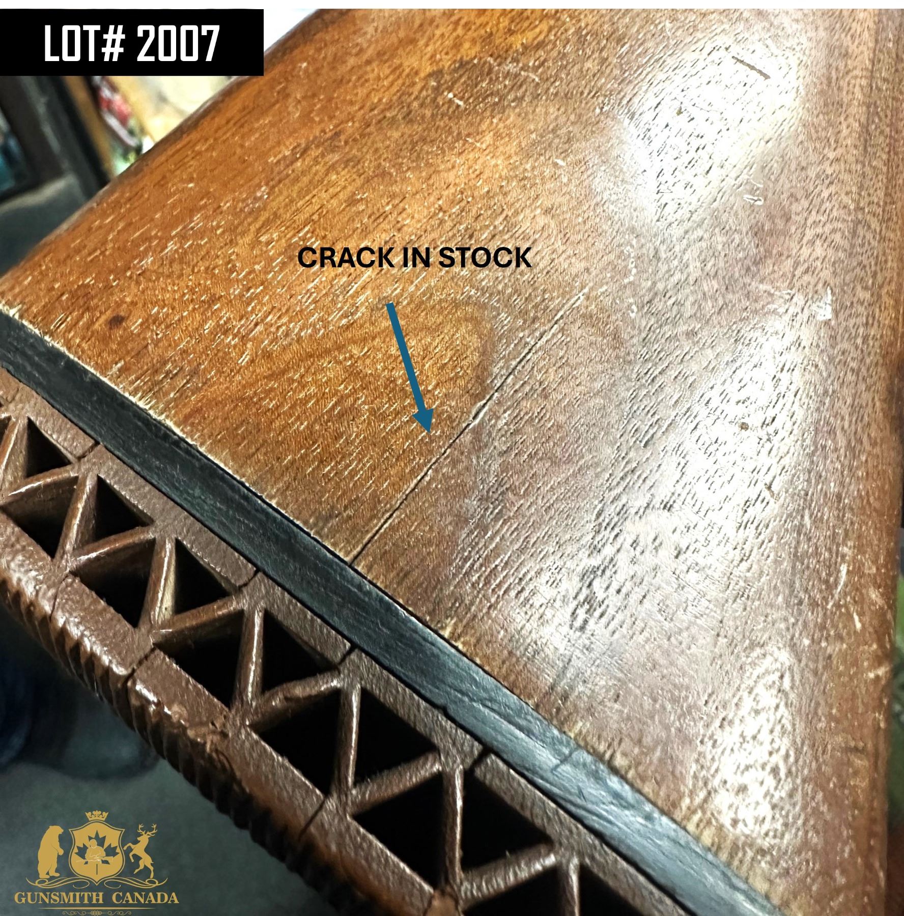 NEEDS CLEANING, STOCK HAS A CRACK NEXT TO BUTPAD (SHOWN IN PICTURE)