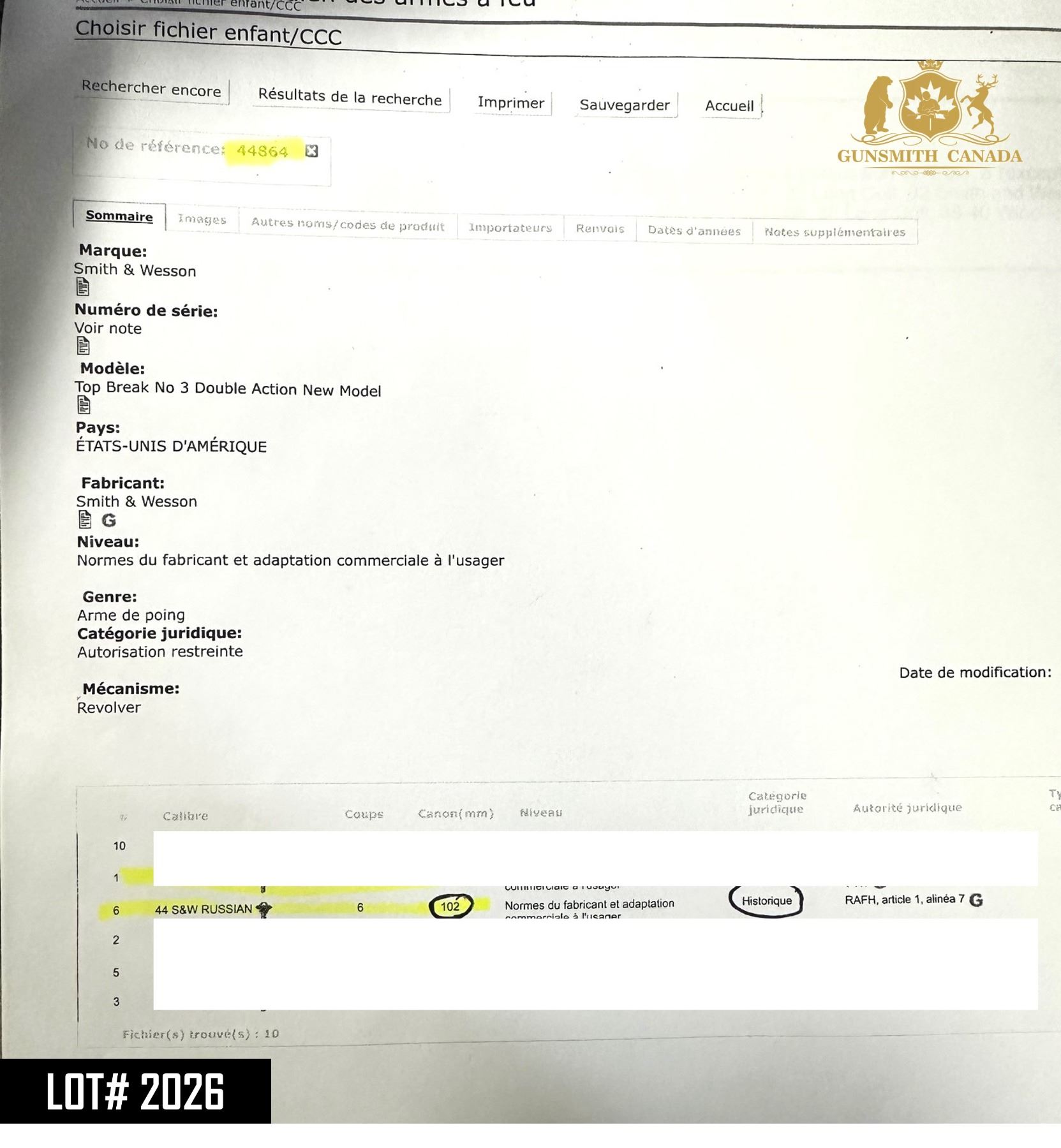 Lot 2026 SMITH & WESSON, TOP BREAK NO 3 DOUBLE ACTION NEW MODEL, CAL. 44S&W RUSSIAN - ANTIQUE STATUS