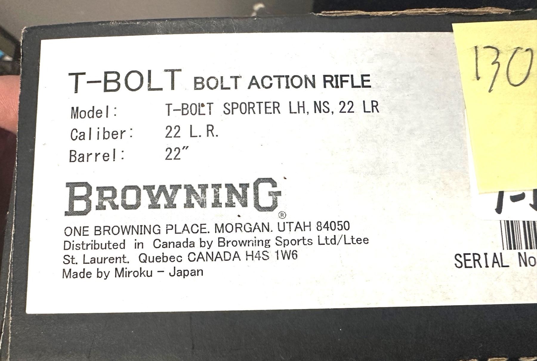 BROWNING, T-BOLT SPORTER LEFT HANDED RIFLE , CAL 22LR, 22" BARREL
