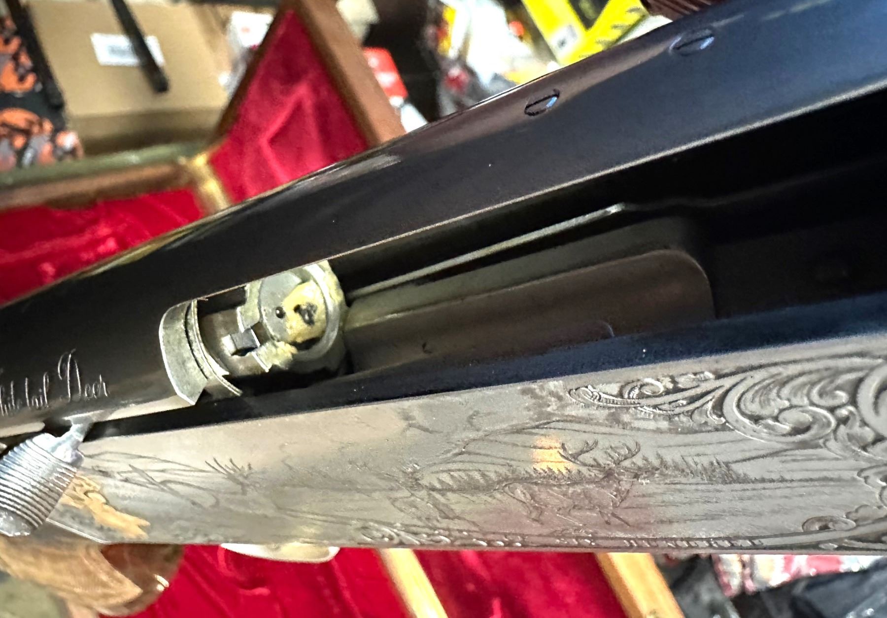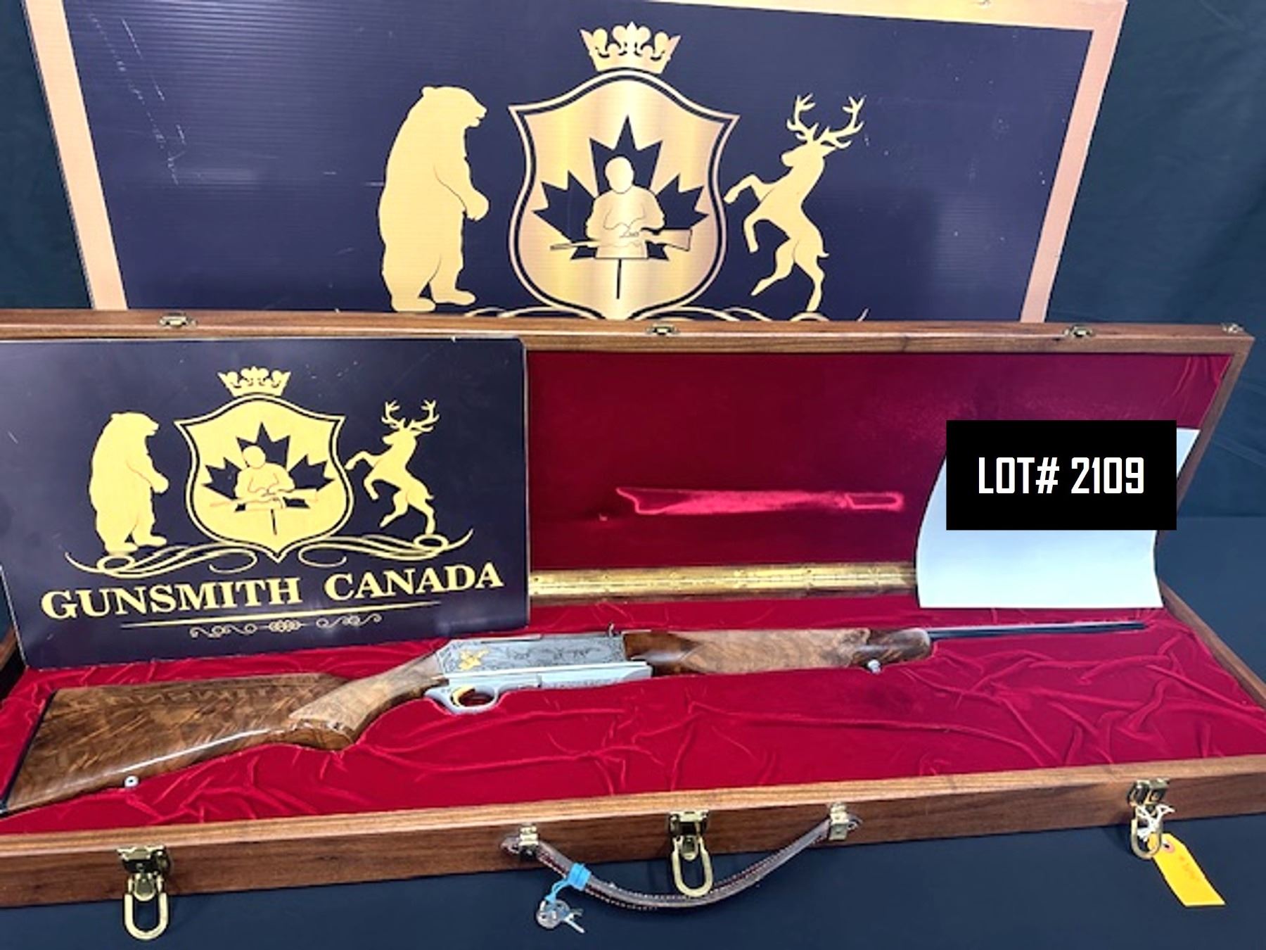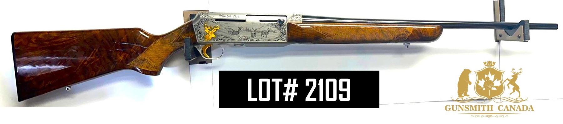 Lot 2109 Browning BAR II WHITE TAIL DEER, CAL 30-06 RIFLE, Double Signed, Engraved and Gold Inlaid