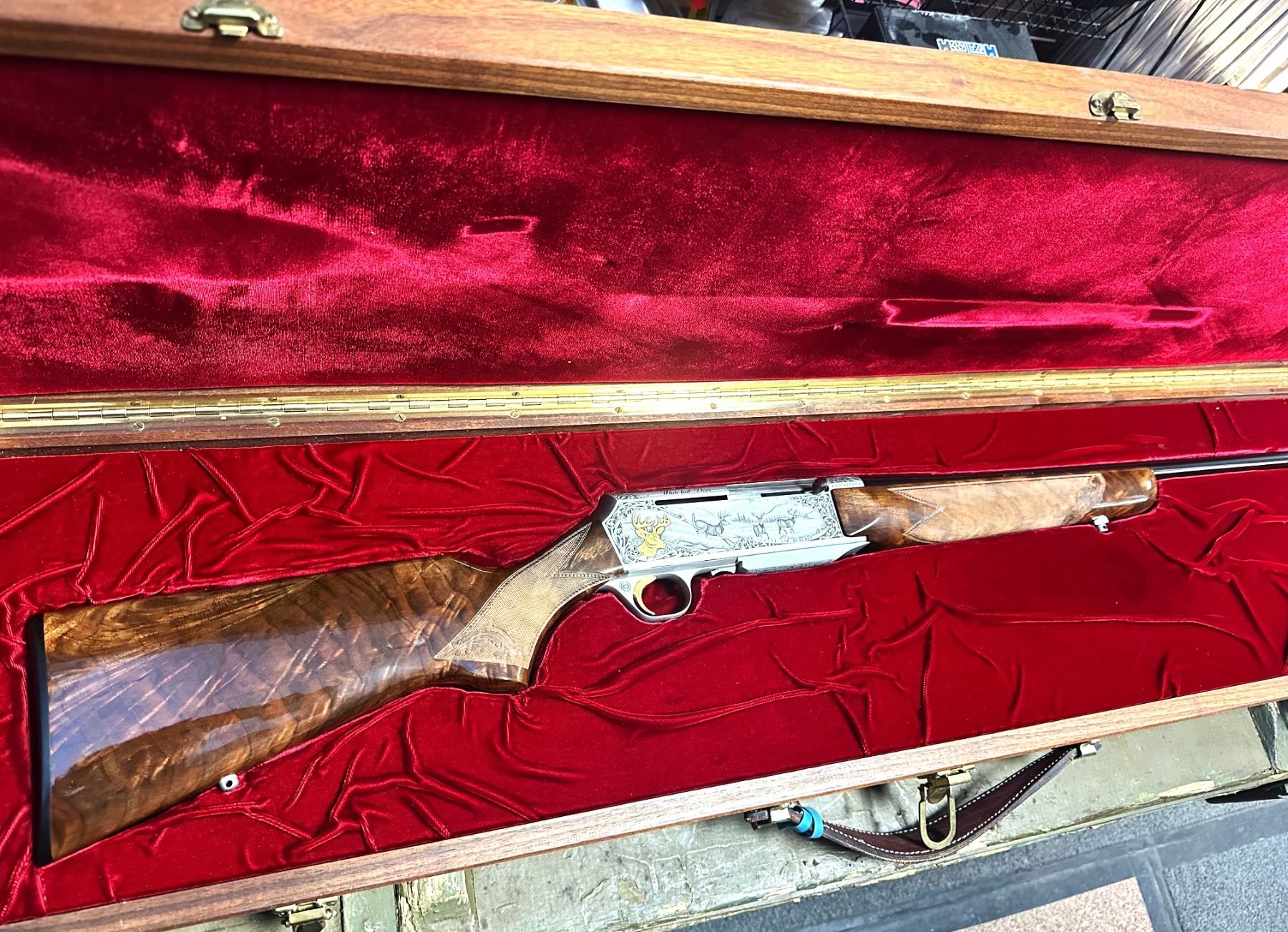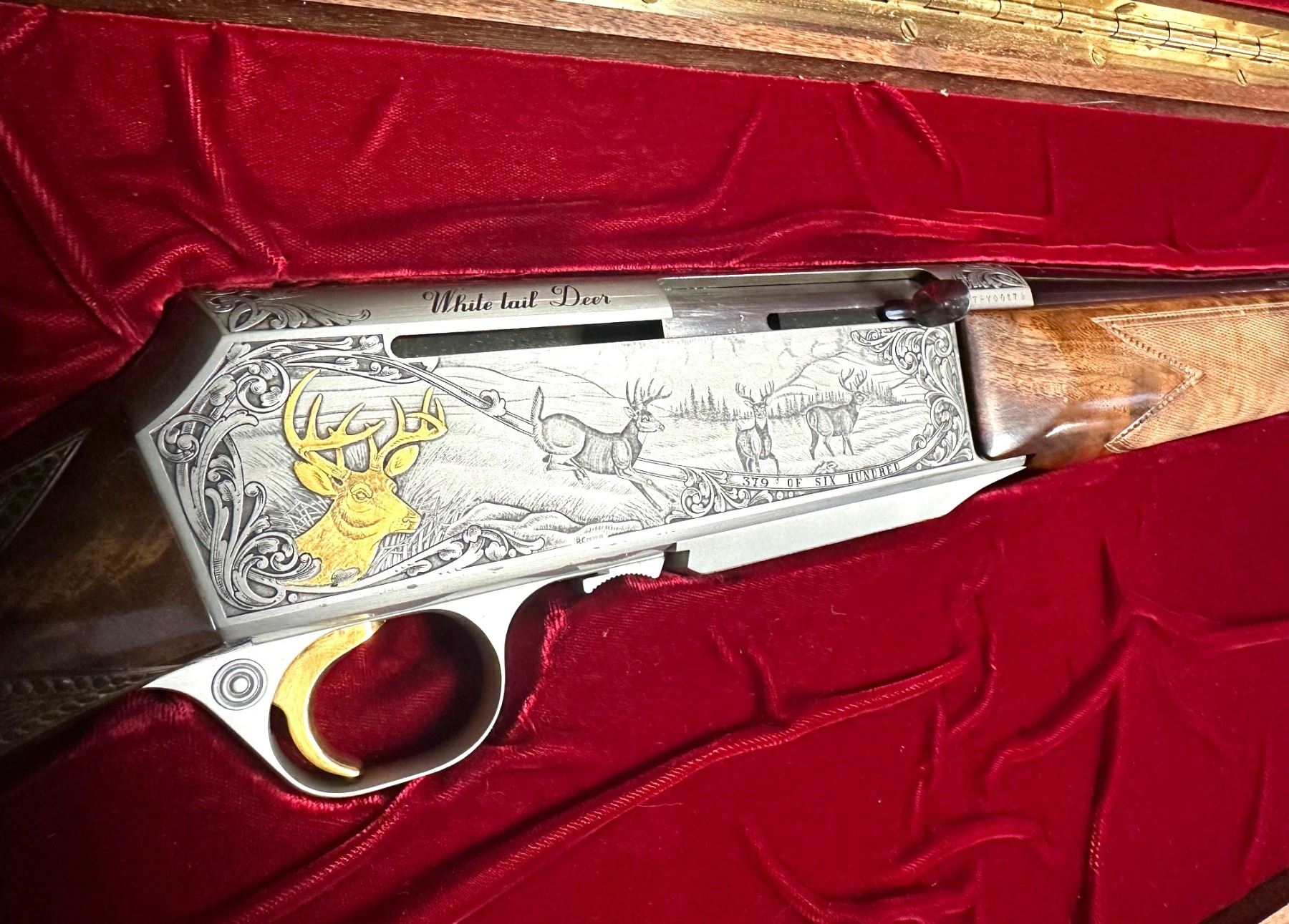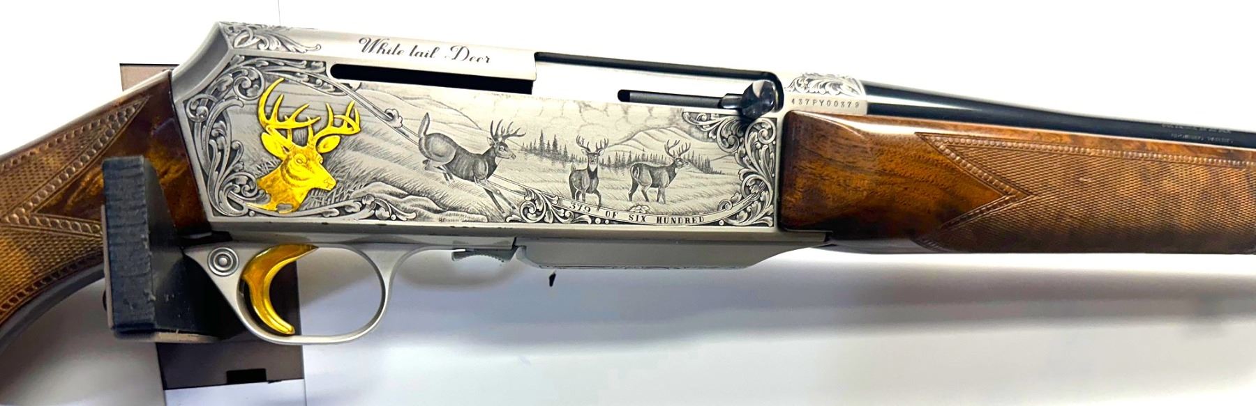 Browning BAR II WHITE TAIL DEER, CAL 30-06 RIFLE, Double Signed, Engraved and Gold Inlaid