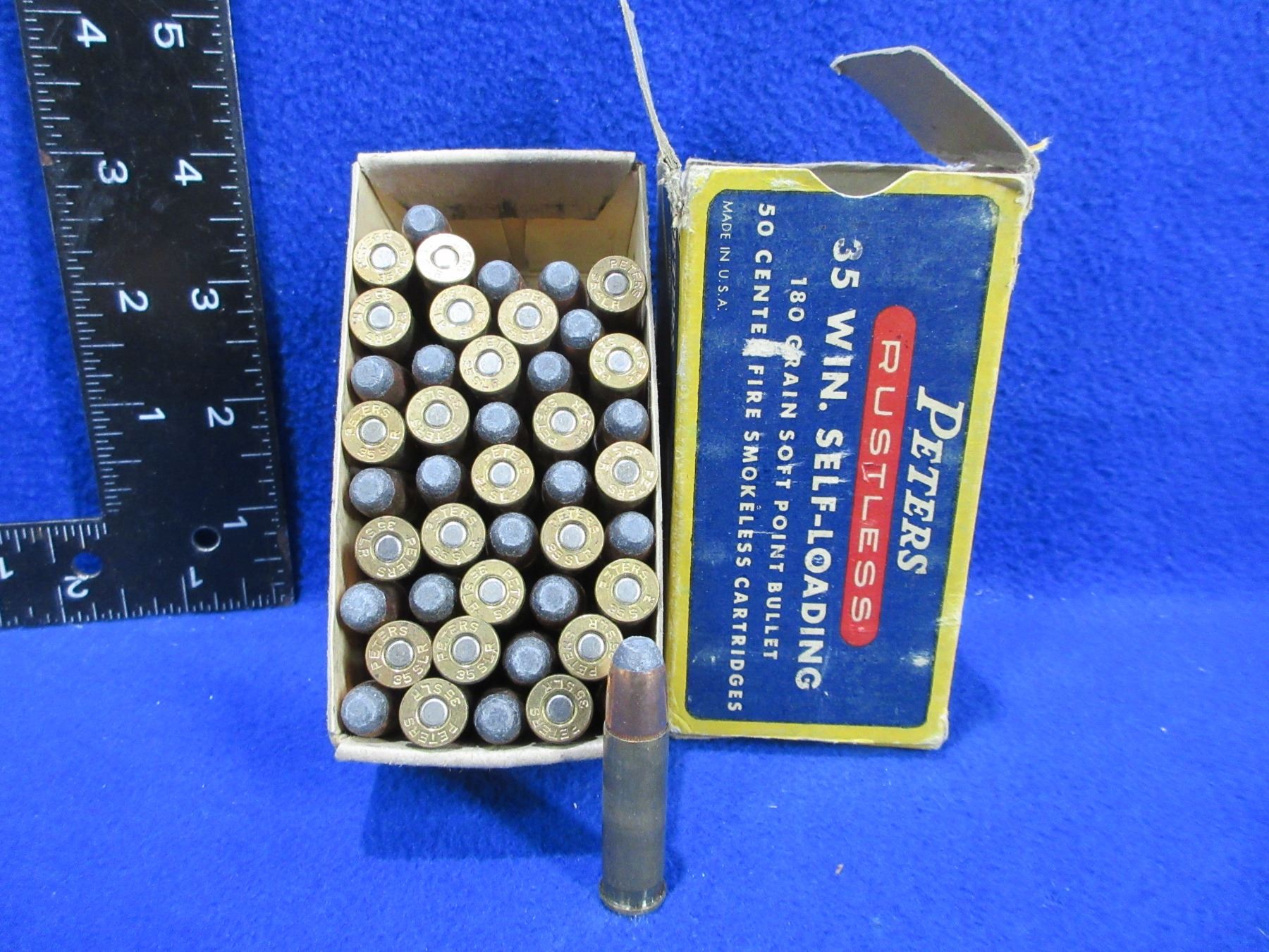 Collector Ammo - 35 Win. Self-Loading 180gr SP Peters Rustless Cartridges - Box of 45 - Box is Damaged - PICK UP ONLY