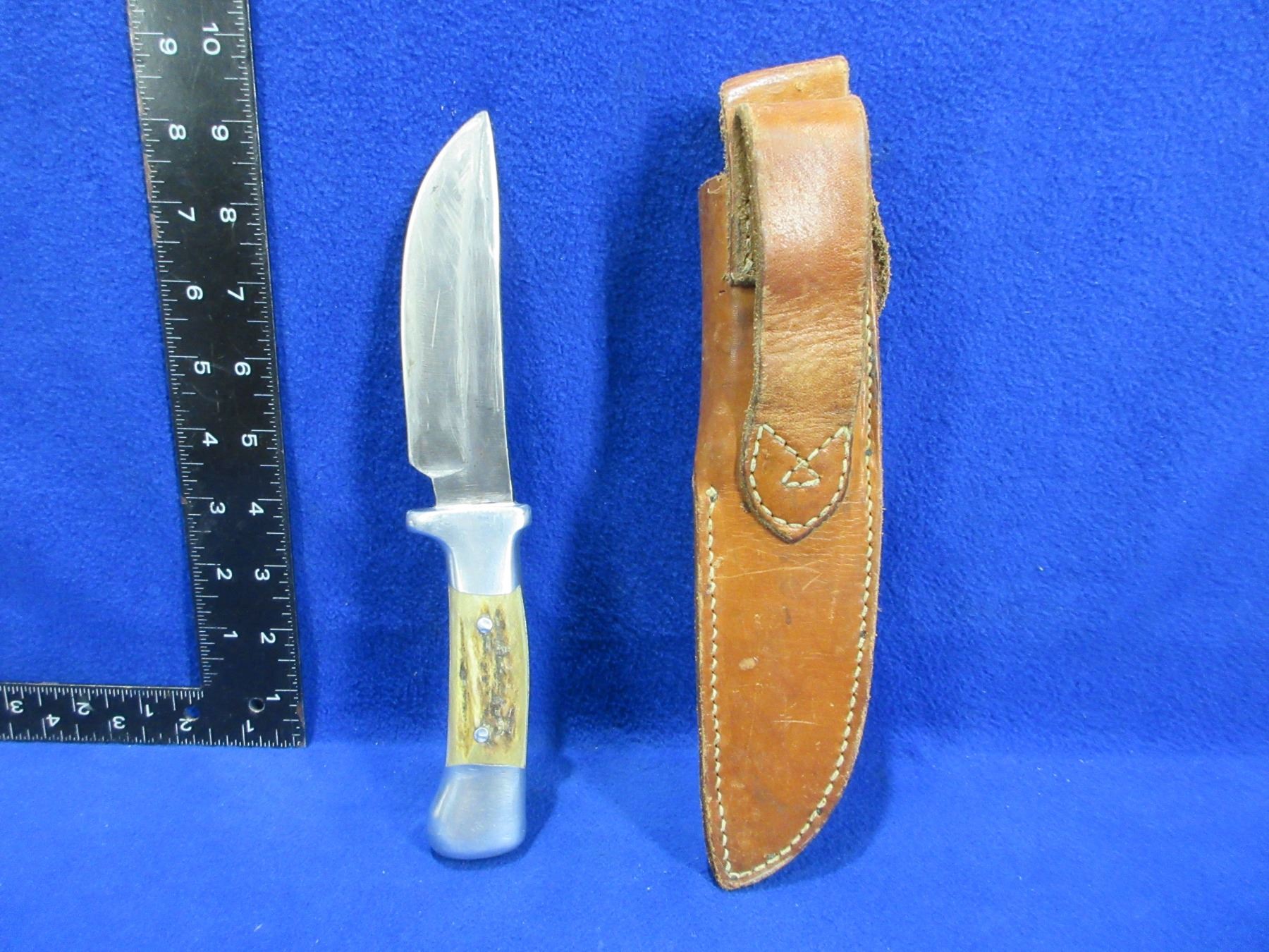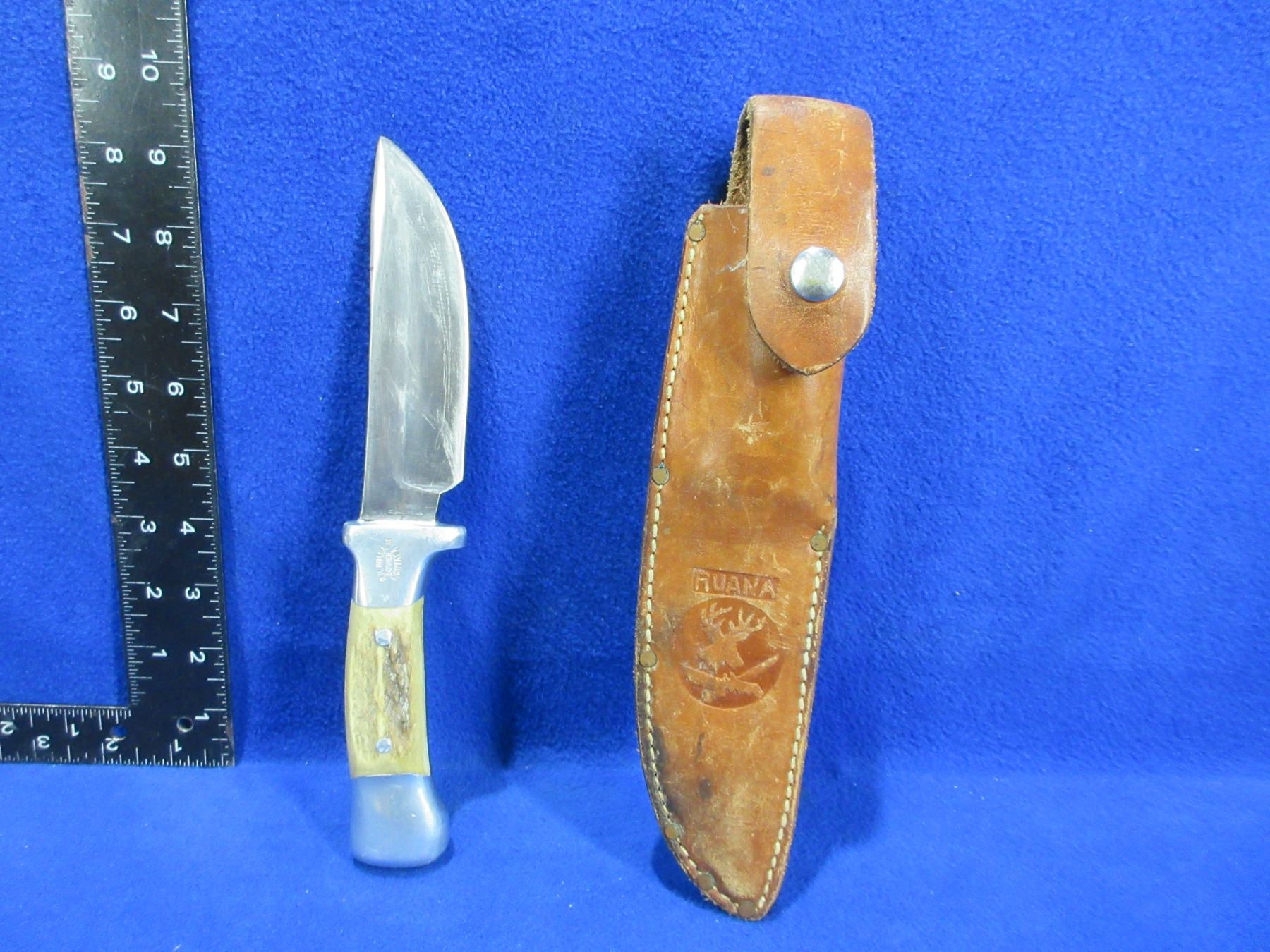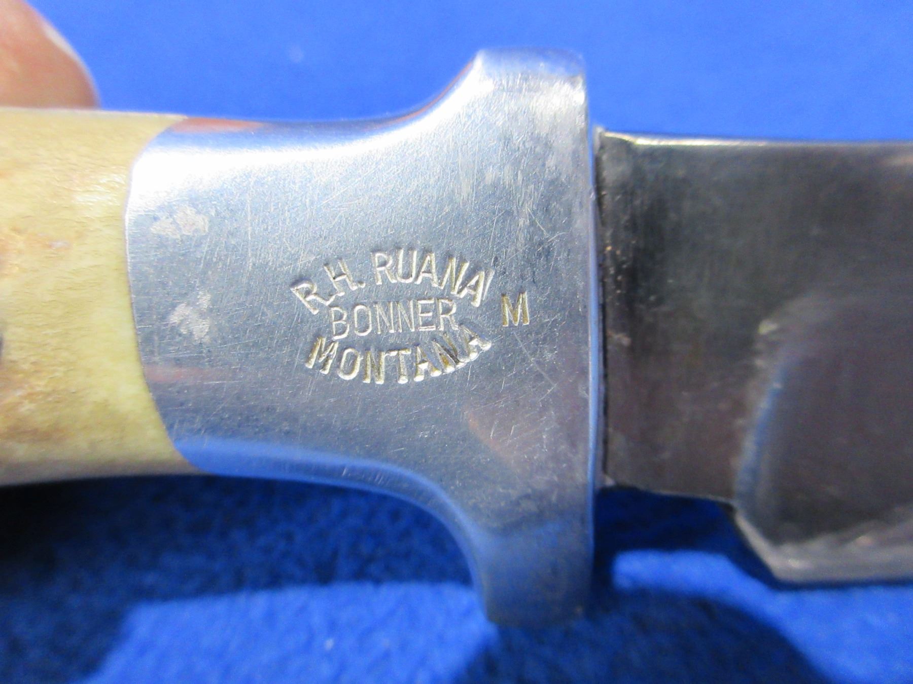 Lot 2056 R.H. Ruana "M" Stamp Fixed Blade Knife with Stag Handle