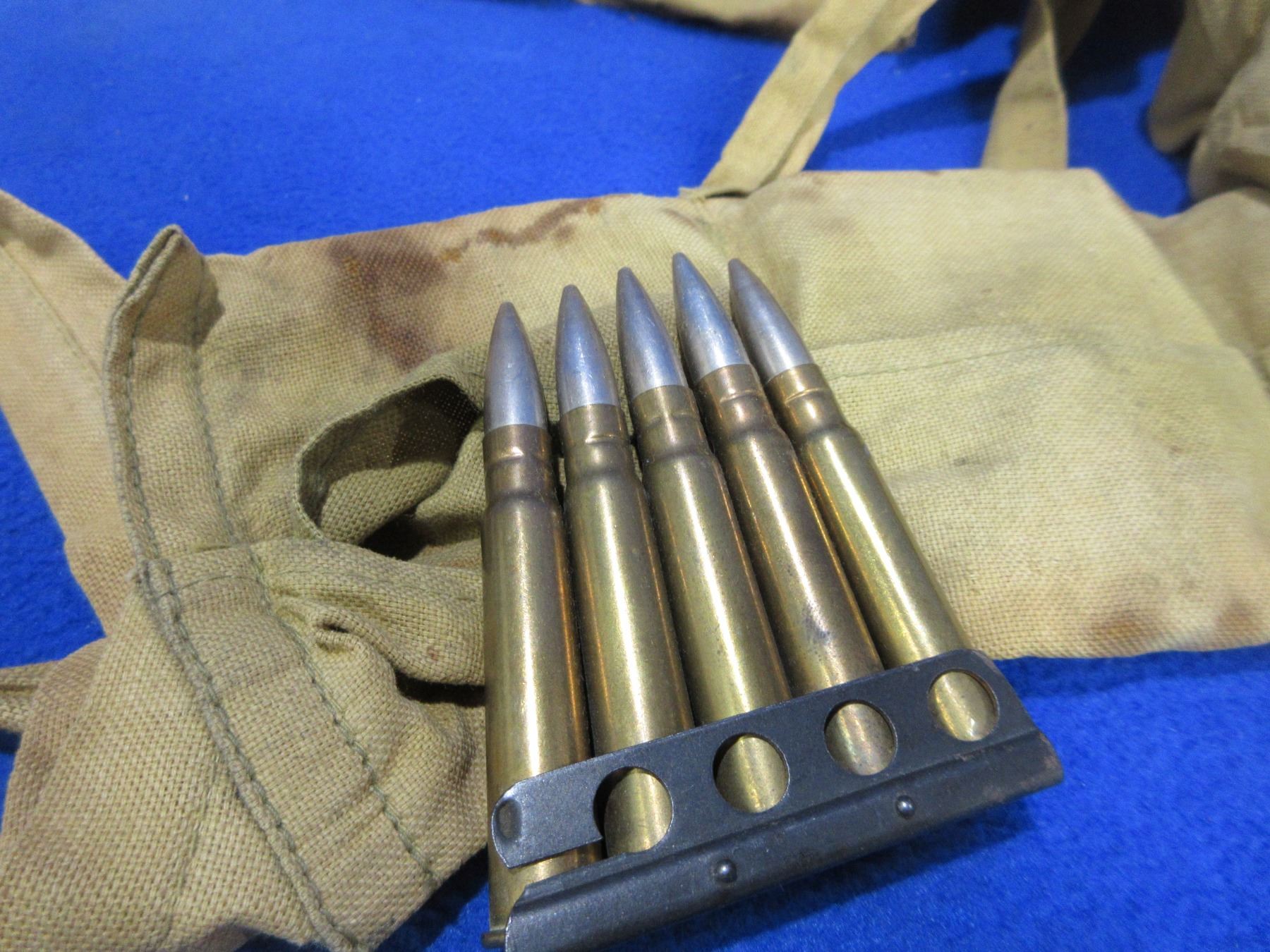 .303" S.A. Ball Cartridges on Stripper Clips with Bandoleers - 2 Bandoleers (5 Per Stripper Clip, 5 Pouches Per Bandoleer) - 48 Cartridges Total (2 Missing) - PICK UP ONLY