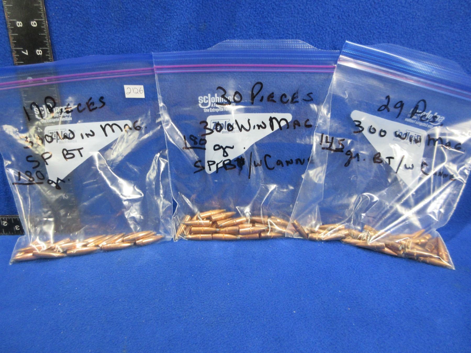 Lot 2126 .308" 300 Win. Mag Bullets - Bag of 29 (145gr BT), Bag of 30 (180gr SPFB), Bag of 17 (180gr SPBT)